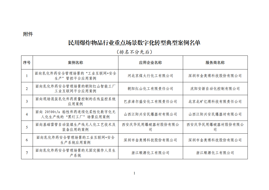 工信部|民用爆炸物品行業重點場景數字化轉型典型案例名單公布