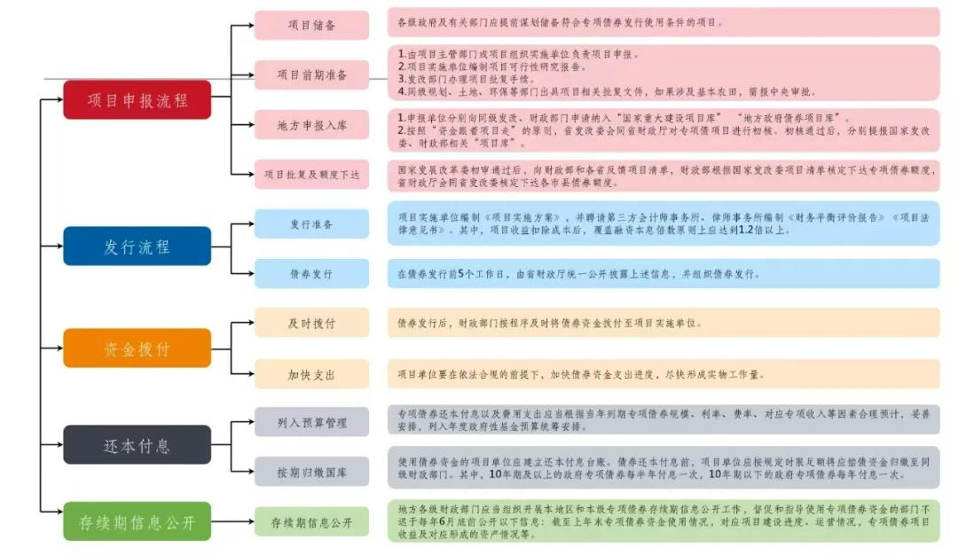 各地、各部門首先確定國家宏觀政策、部門和行業發展?規劃中需要債券資金支持,且滿足債券發行條件與要求的具?體項目,準備好項目批復、可行性研究報告等相關支撐材料,在?專項債系統中分年度錄入債券需求,形成儲備項目庫中的項目。