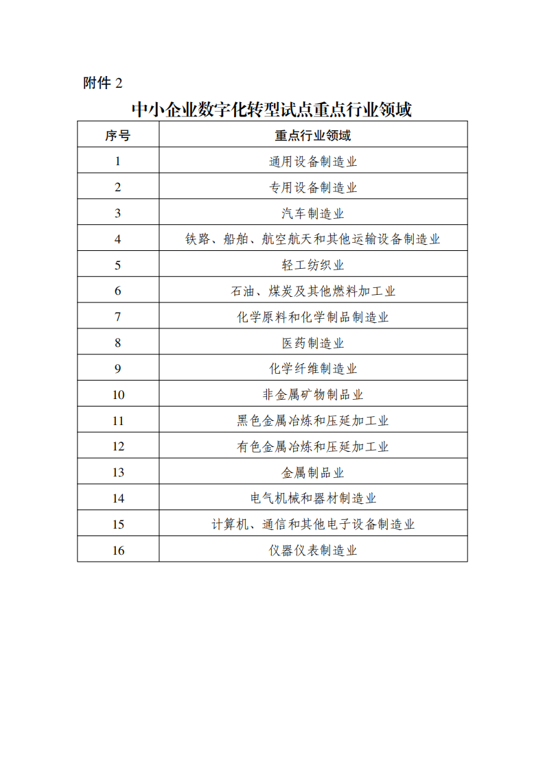 ? ? ? ? ? ? ? ? ? ? ?2.中小企業(yè)數(shù)字化轉(zhuǎn)型試點(diǎn)重點(diǎn)行業(yè)領(lǐng)域