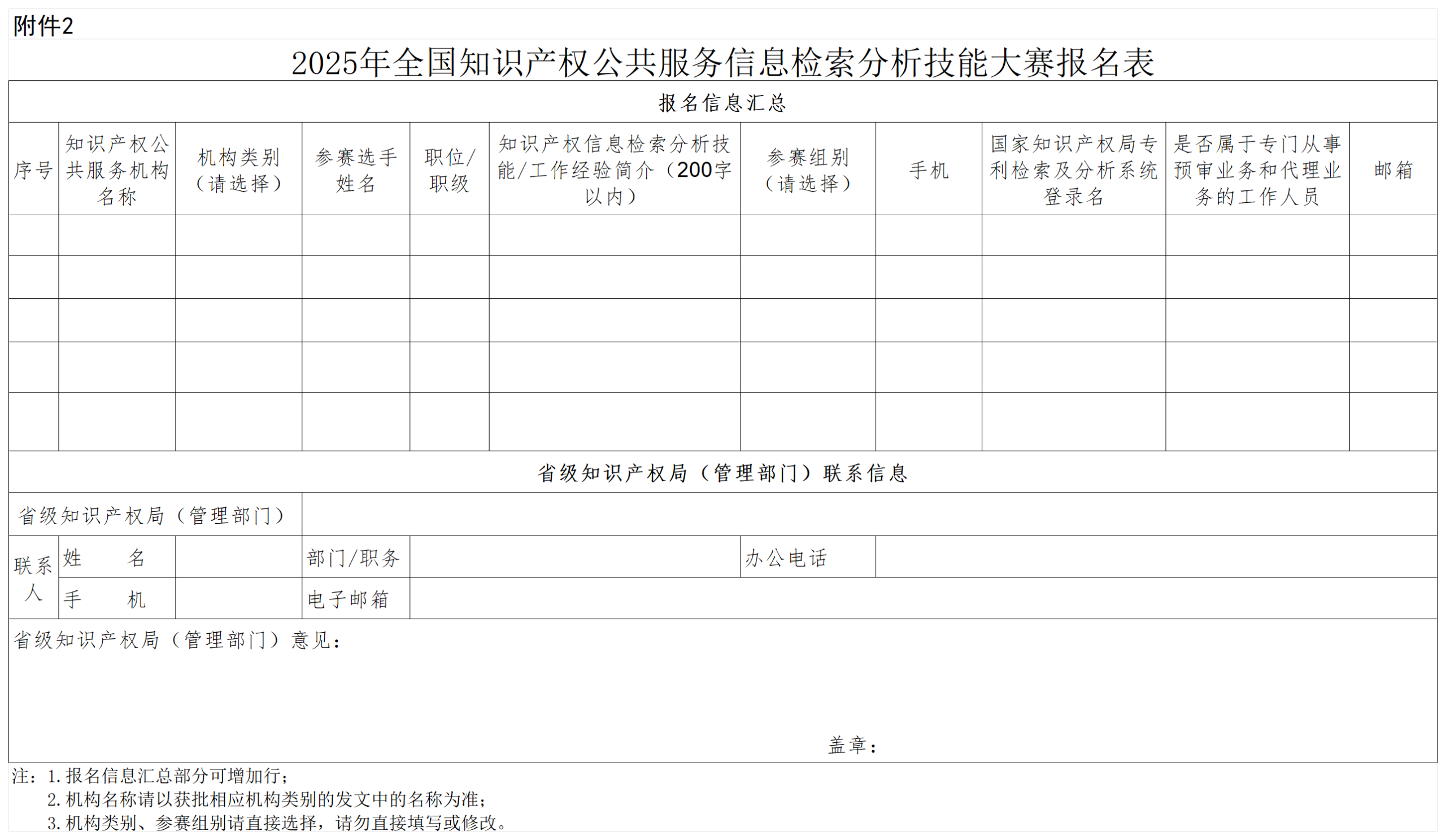 2.2025年全國知識產權公共服務信息檢索分析技能大賽報名表