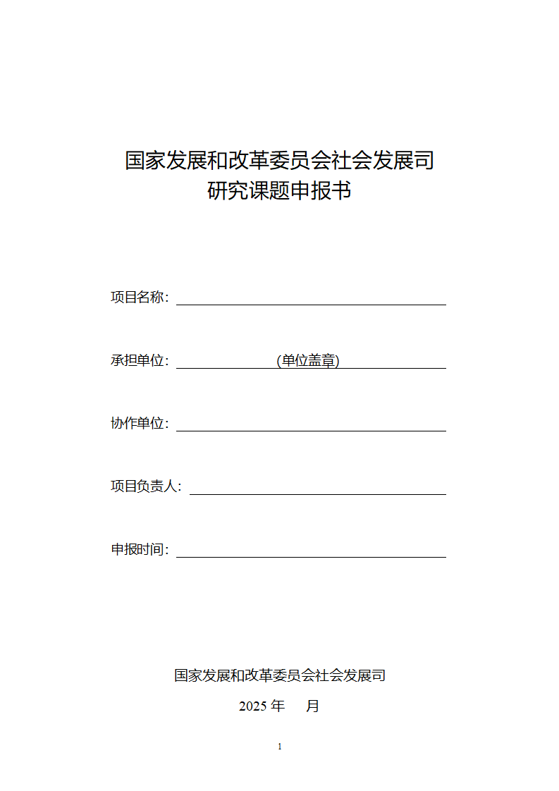 附:國家發展和改革委員會社會發展司研究課題申報書