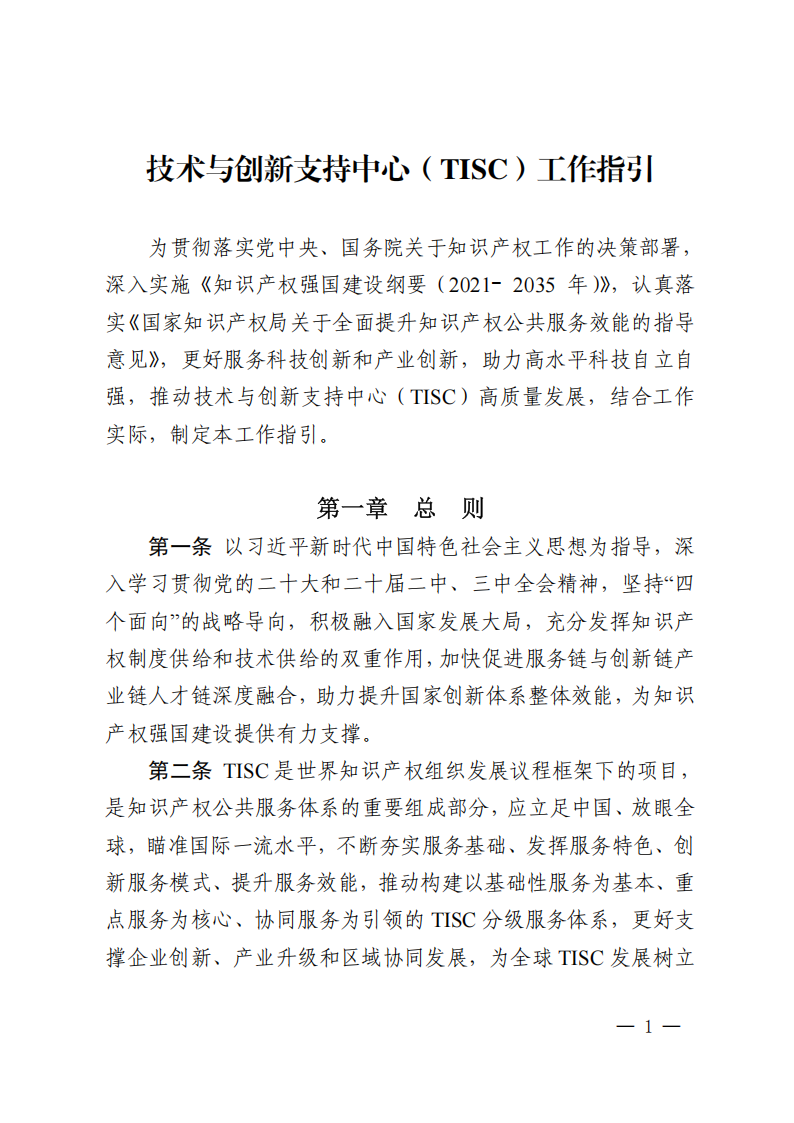 國家知識產權局辦公室關于印發《技術與創新支持中心(TISC)工作指引》的通知