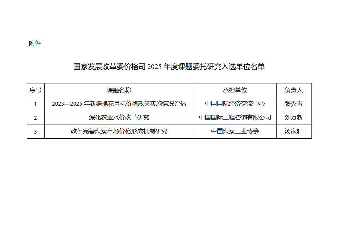 附件:國家發展改革委價格司2025年度課題委托研究入選單位名單