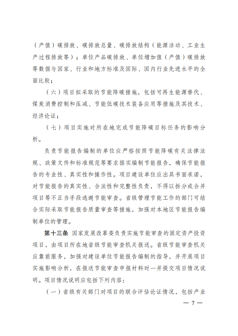《固定資產投資項目節能審查和碳排放評價辦法》 2025年第31號令