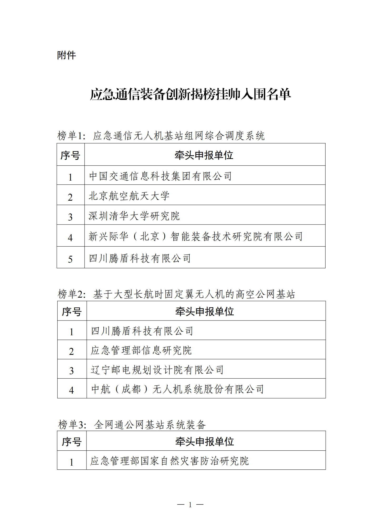 附件:應急通信裝備創新揭榜掛帥入圍名單
