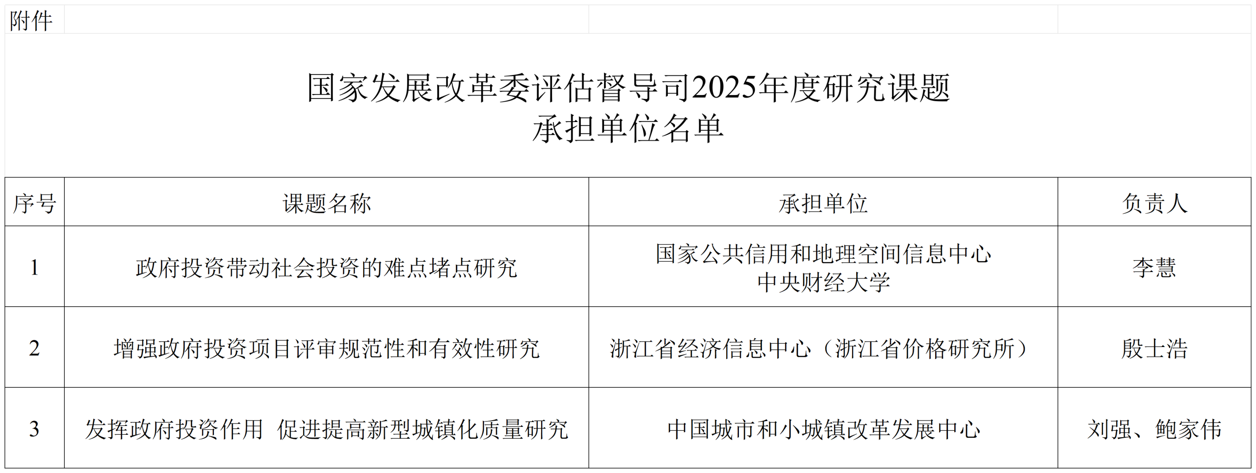 國家發展改革委評估督導司關于2025年度研究課題入選單位的公告