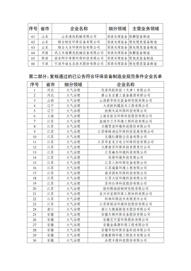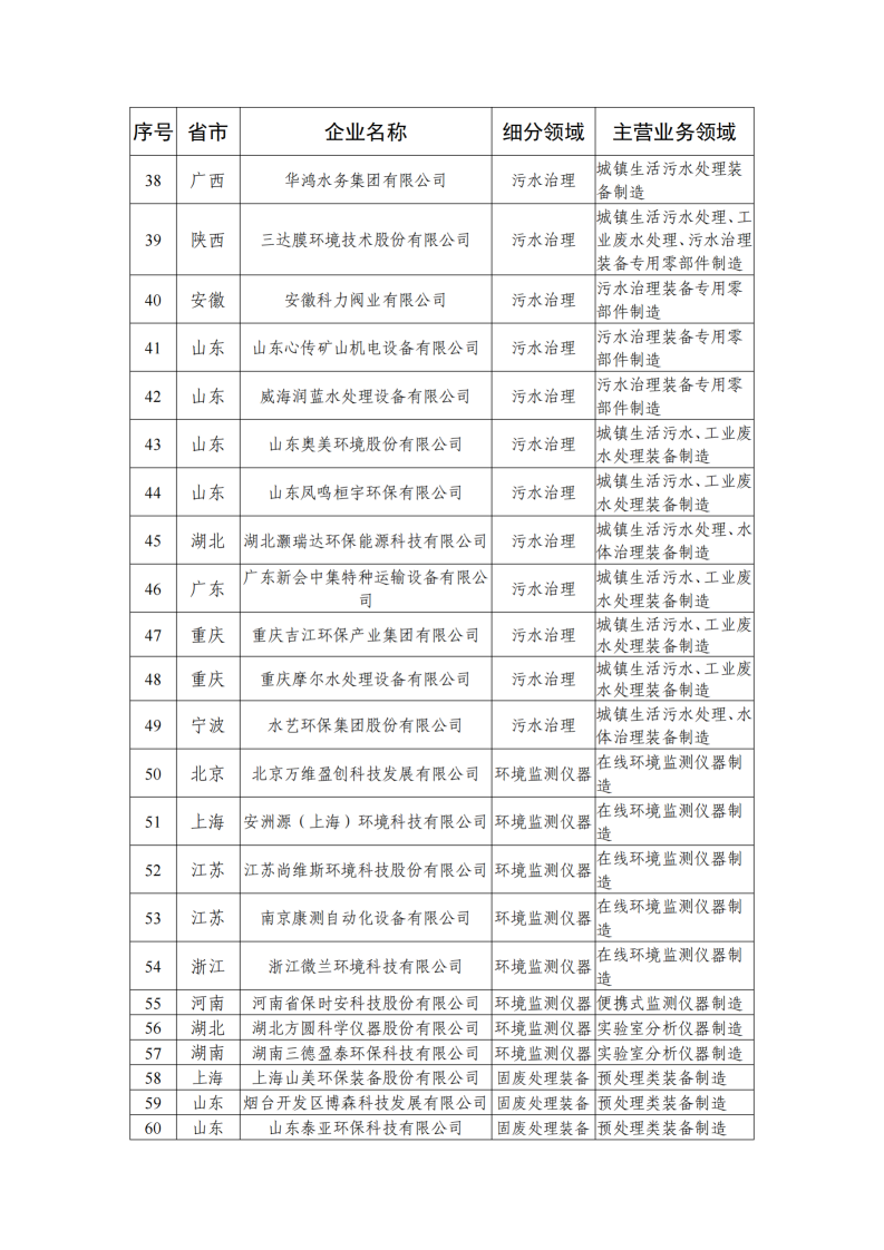 符合環保裝備制造業規范條件企業名單(2025年版)