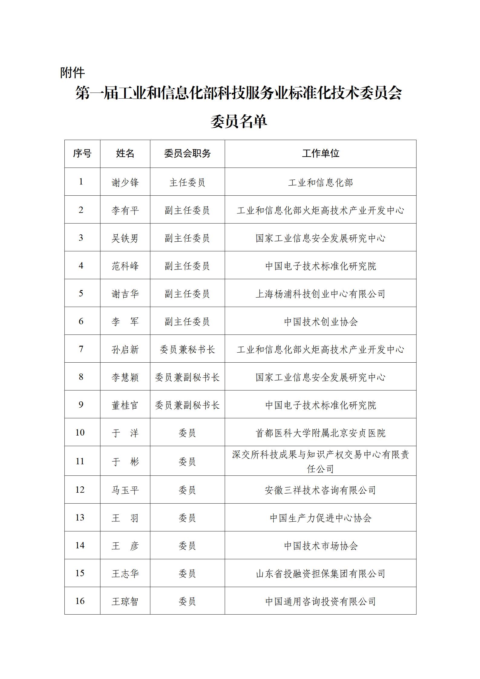 附件:第一屆工業(yè)和信息化部科技服務業(yè)標準化技術委員會委員名單
