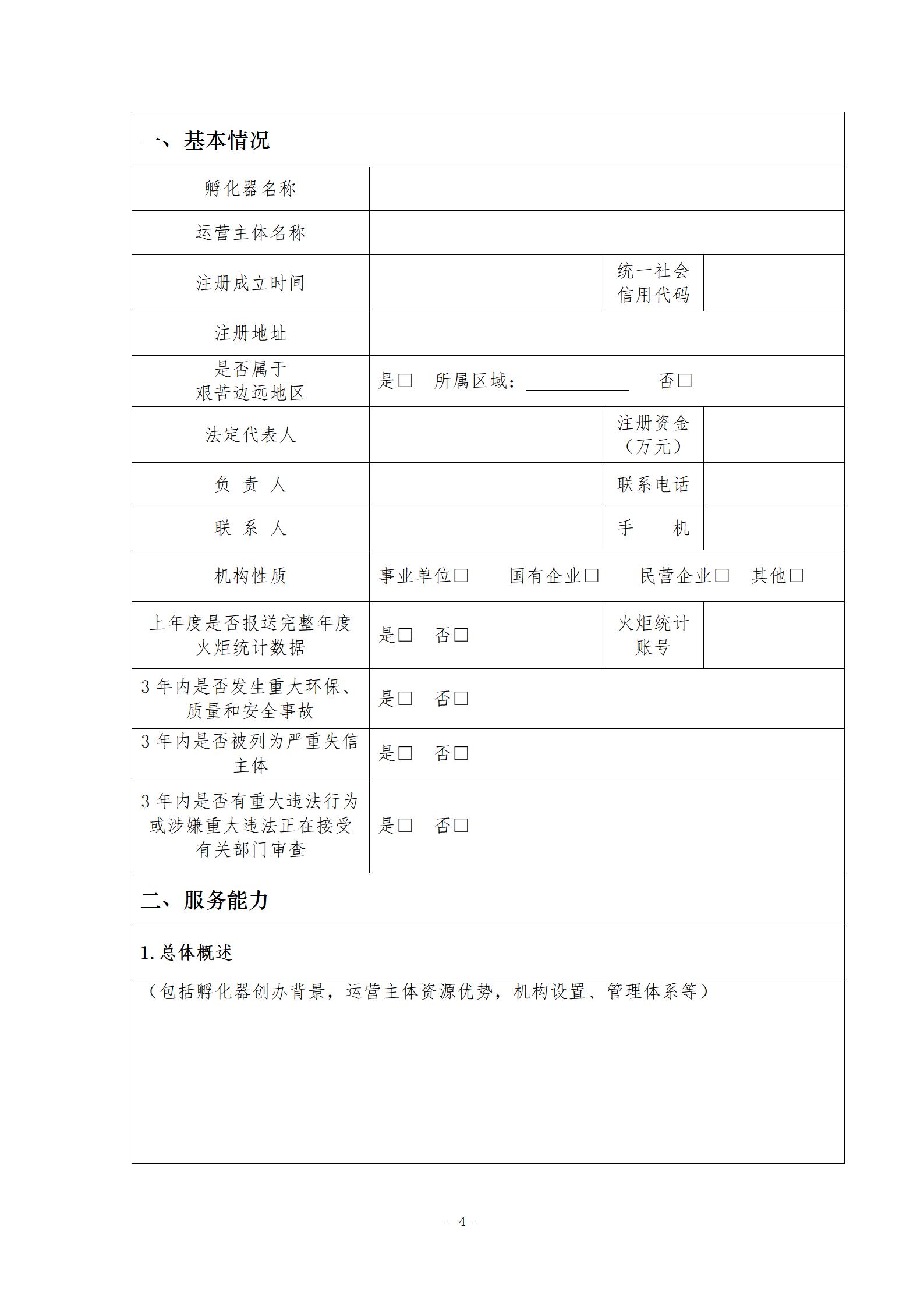 一、孵化器運營主體(需為獨立法人)需使用統一社會信用代碼,通過“統一身份認證與單點登錄平臺”(網址:https://hjrz.chinatorch.org.cn/login)進入孵化器管理與信息服務系統,按要求在線填報申報書(可同時申報標準級、卓越級,申報書見附件1、附件2)。