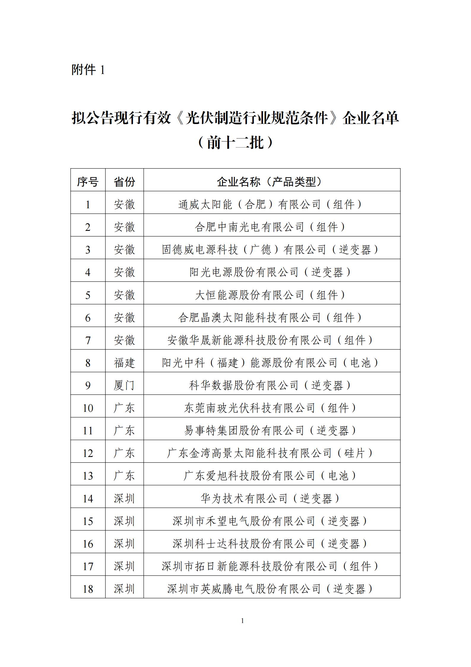 附件:1.擬公告現(xiàn)行有效符合《光伏制造行業(yè)規(guī)范條件》企業(yè)名單(前十二批)
