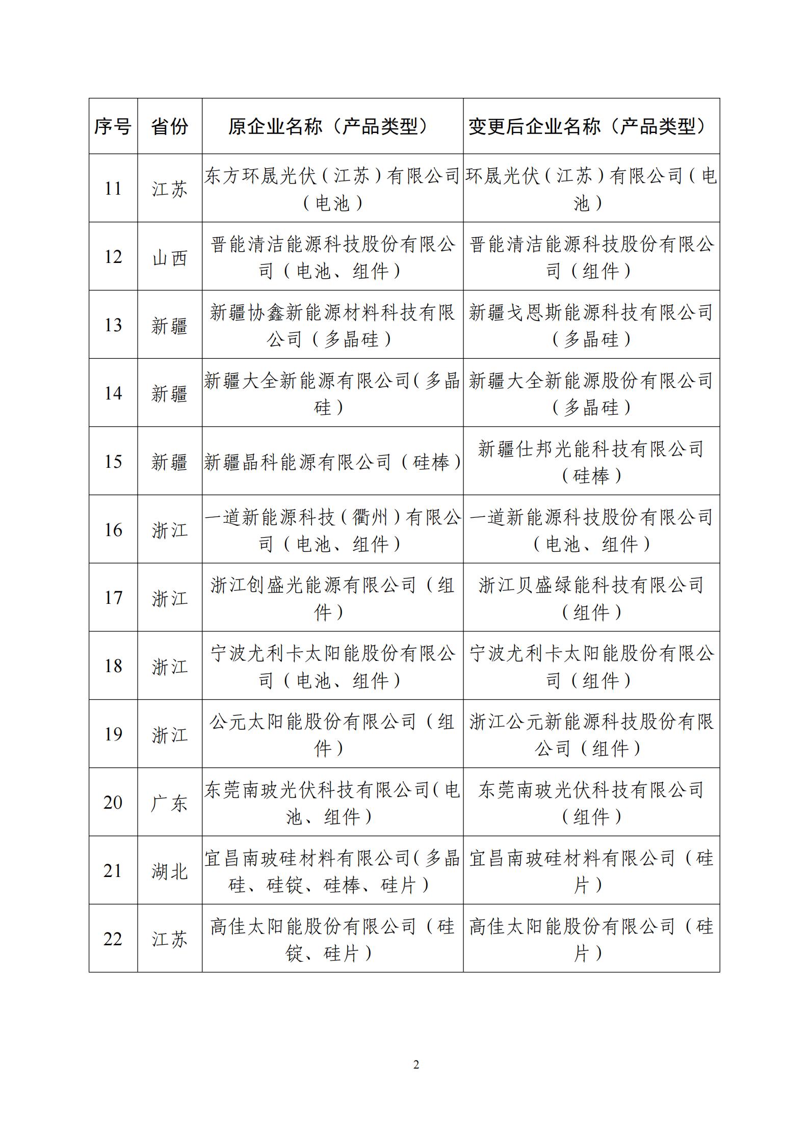 2.光伏制造行業(yè)規(guī)范企業(yè)變更公告信息