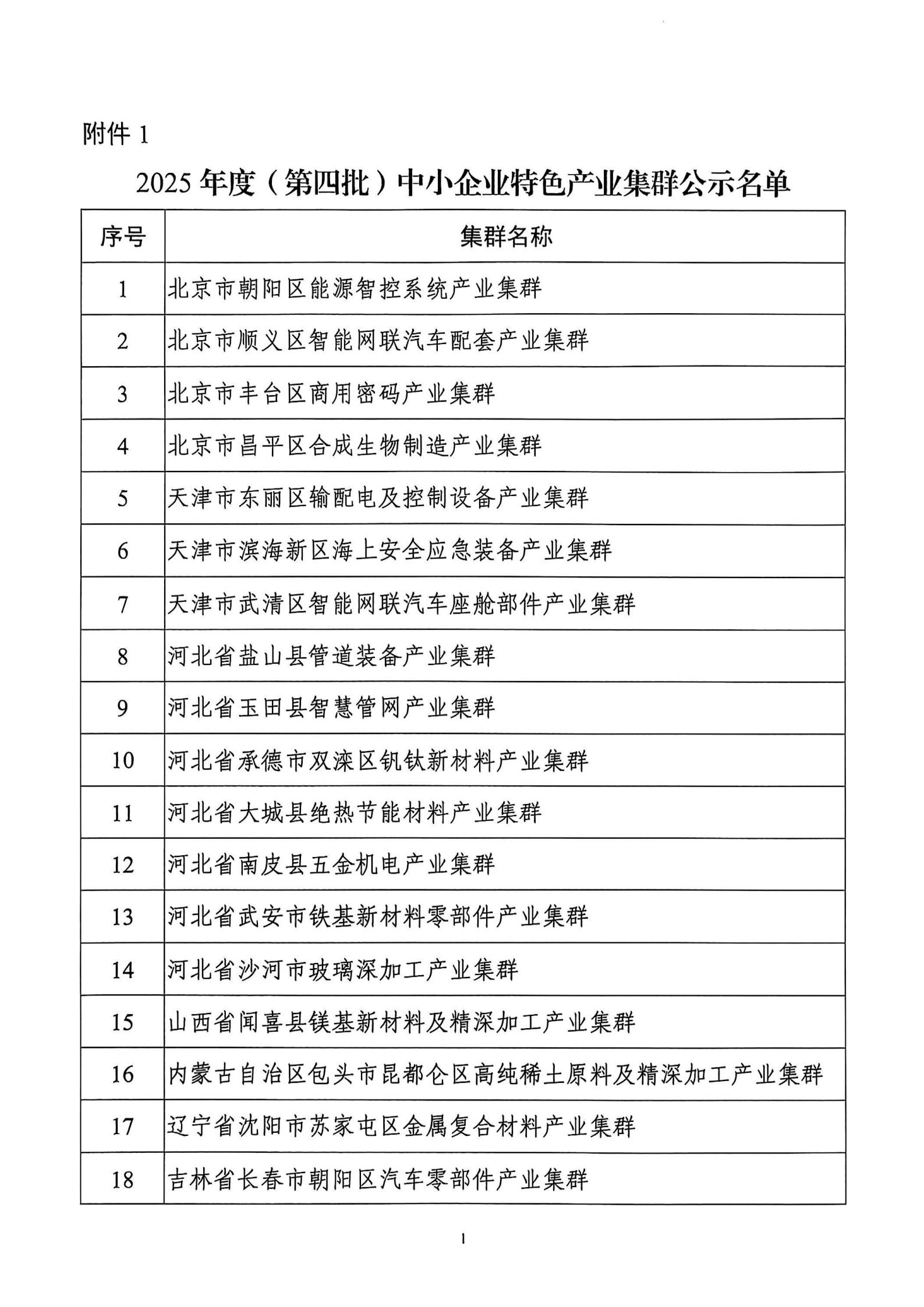 附件:1.2025年度(第四批)中小企業特色產業集群公示名單