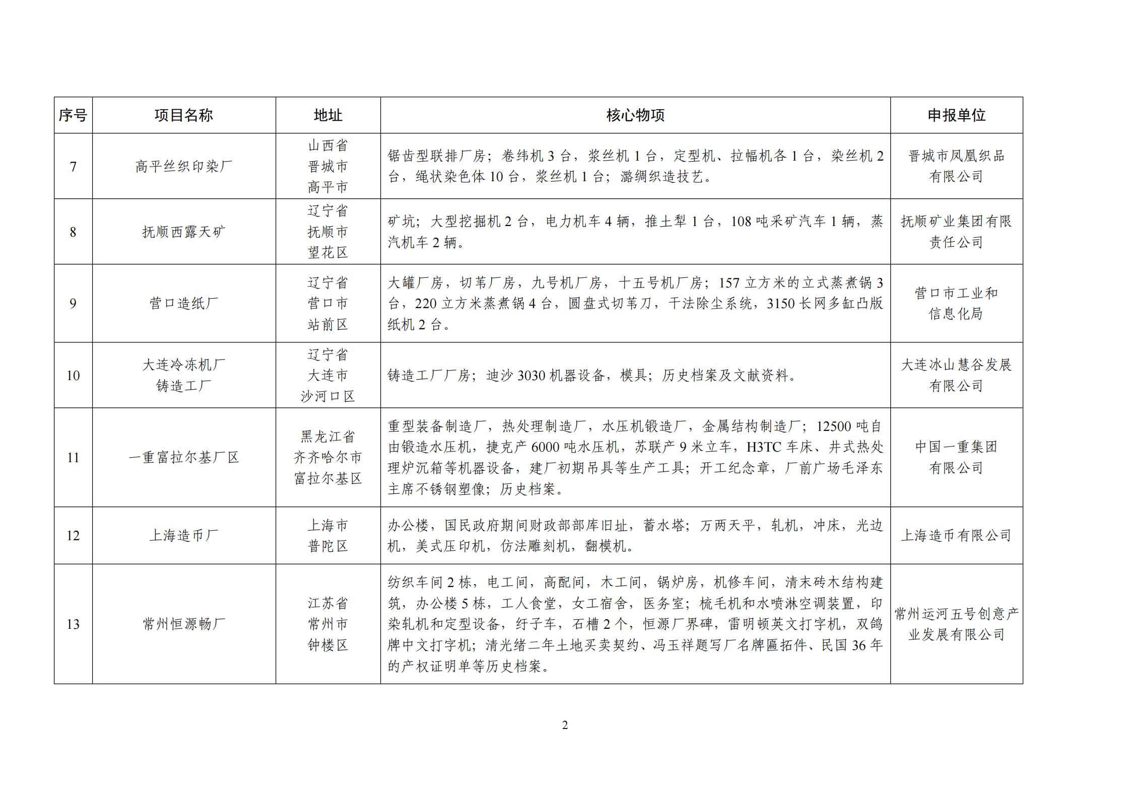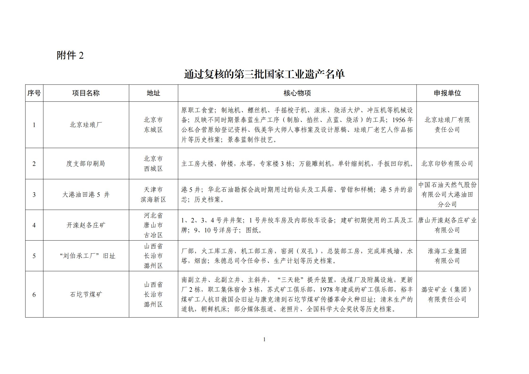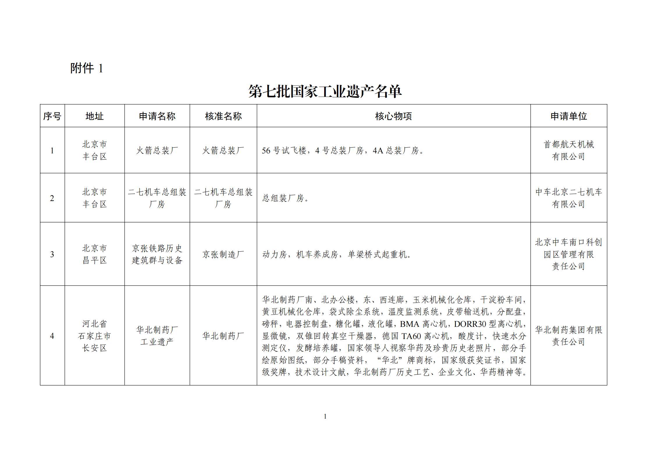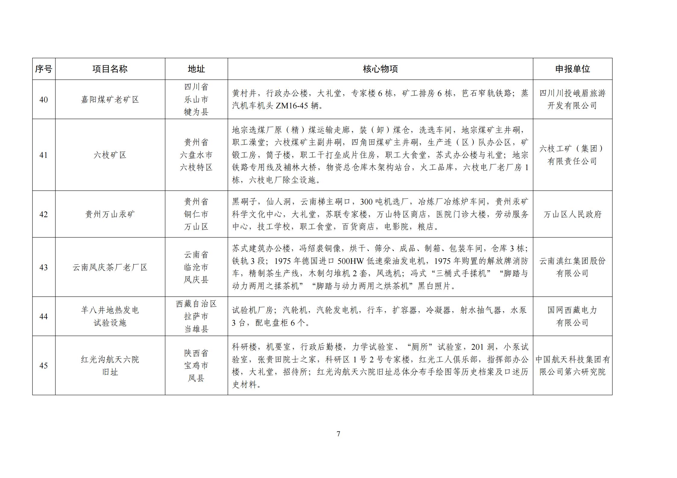 工業和信息化部關于公布第七批國家工業遺產及通過復核的第三批國家工業遺產名單的通知