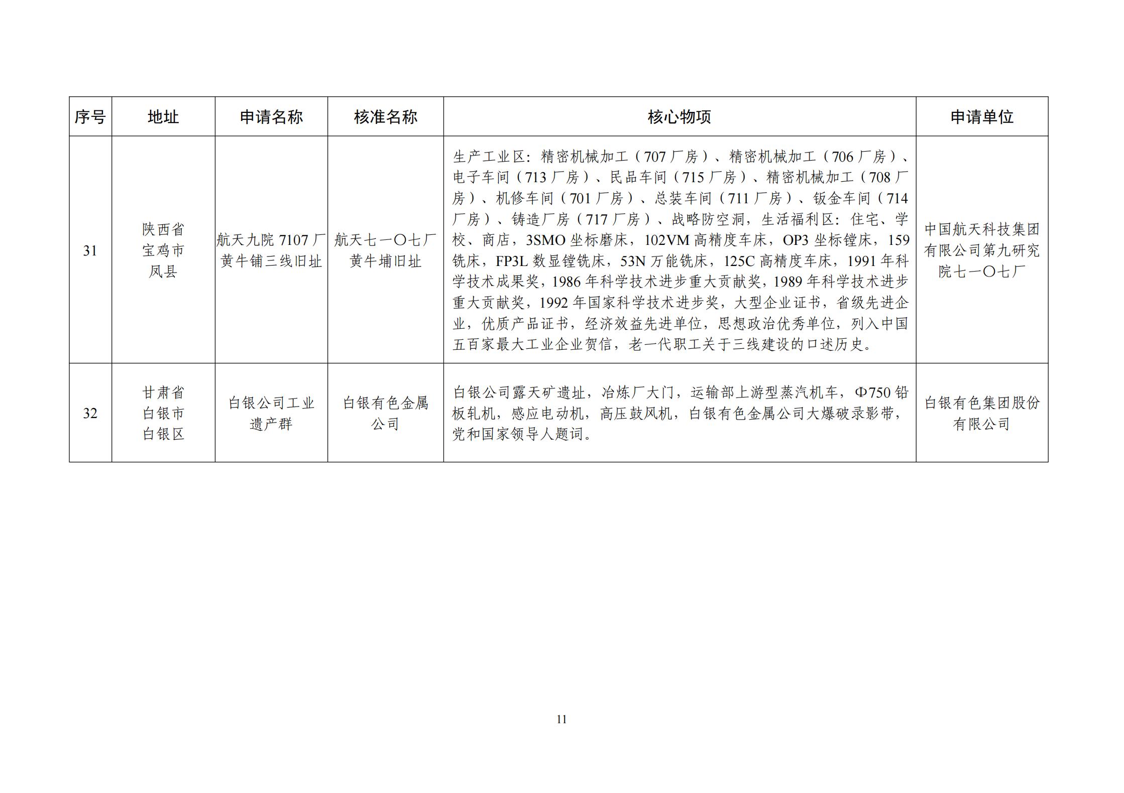 為貫徹落實習近平總書記關于文化遺產保護傳承的重要論述,加強工業遺產保護利用,根據《國家工業遺產管理辦法》(工信部政法〔2023〕24號)和《工業和信息化部辦公廳關于組織開展第七批國家工業遺產認定申報和第三批復核工作的通知》(工信廳政法函〔2025〕72號),經項目單位自愿申報、省級工業和信息化主管部門與中央企業初審推薦、形式審查、專家評審、現場核查及社會公示等程序,我部確定了第七批國家工業遺產和通過復核的第三批國家工業遺產名單,現予以公布。