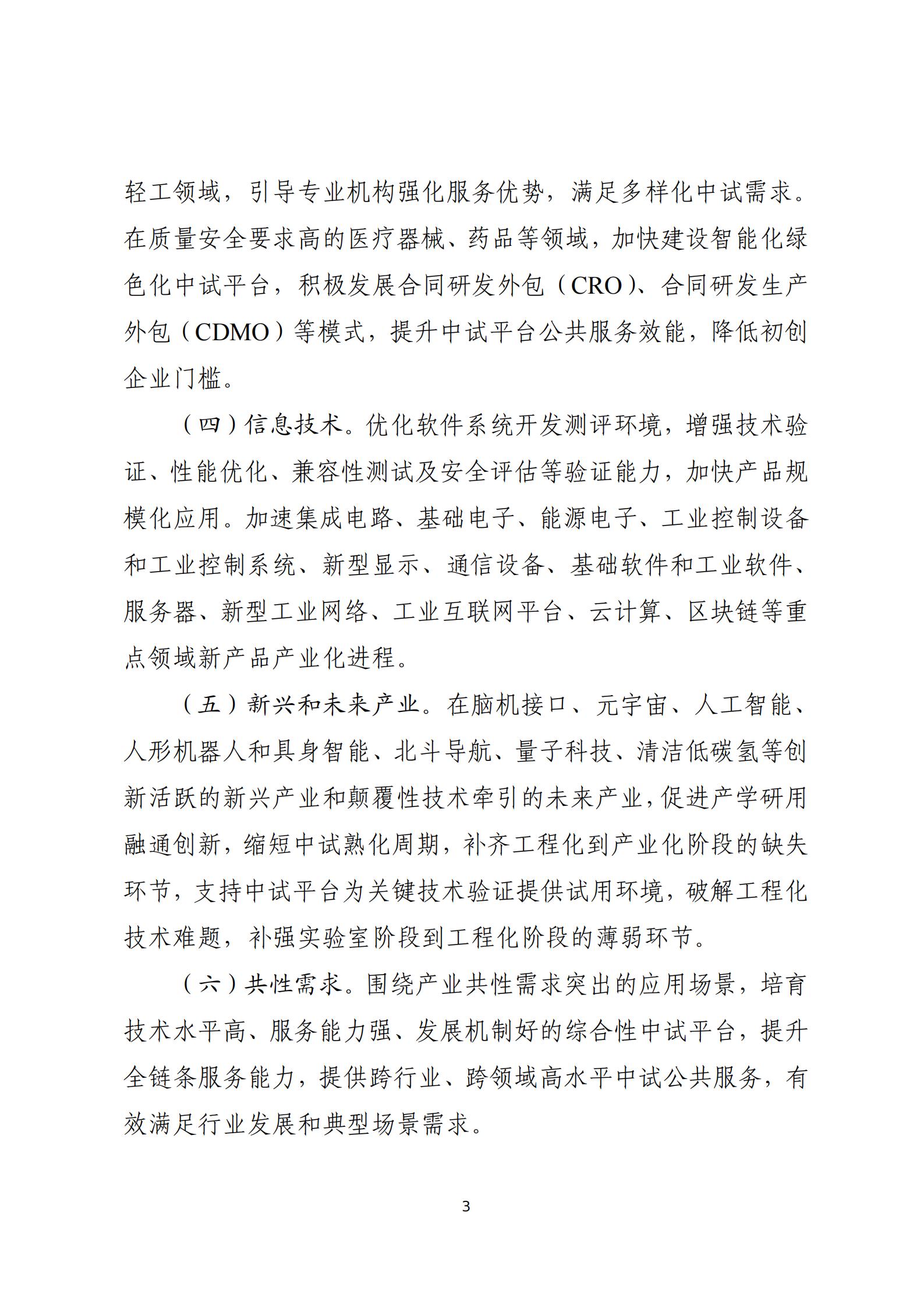 (三)補齊一批中試平臺。堅持需求導向、分業施策、因地制宜,穩步有序布局建設一批中試平臺,不斷充實高水平中試平臺新生力量。聚焦人工智能、人形機器人、量子科技、清潔低碳氫、生物醫藥、工業母機、儀器儀表以及重大技術裝備、新材料、信息技術等關系未來發展、關乎產業安全、中試供給緊缺的關鍵行業領域,各地工業和信息化主管部門結合特色優勢選擇補齊領域,依托產學研用等主體布局建設中試平臺。同等條件下,工業和信息化部優先支持補齊領域中試平臺納入部重點培育中試平臺管理。