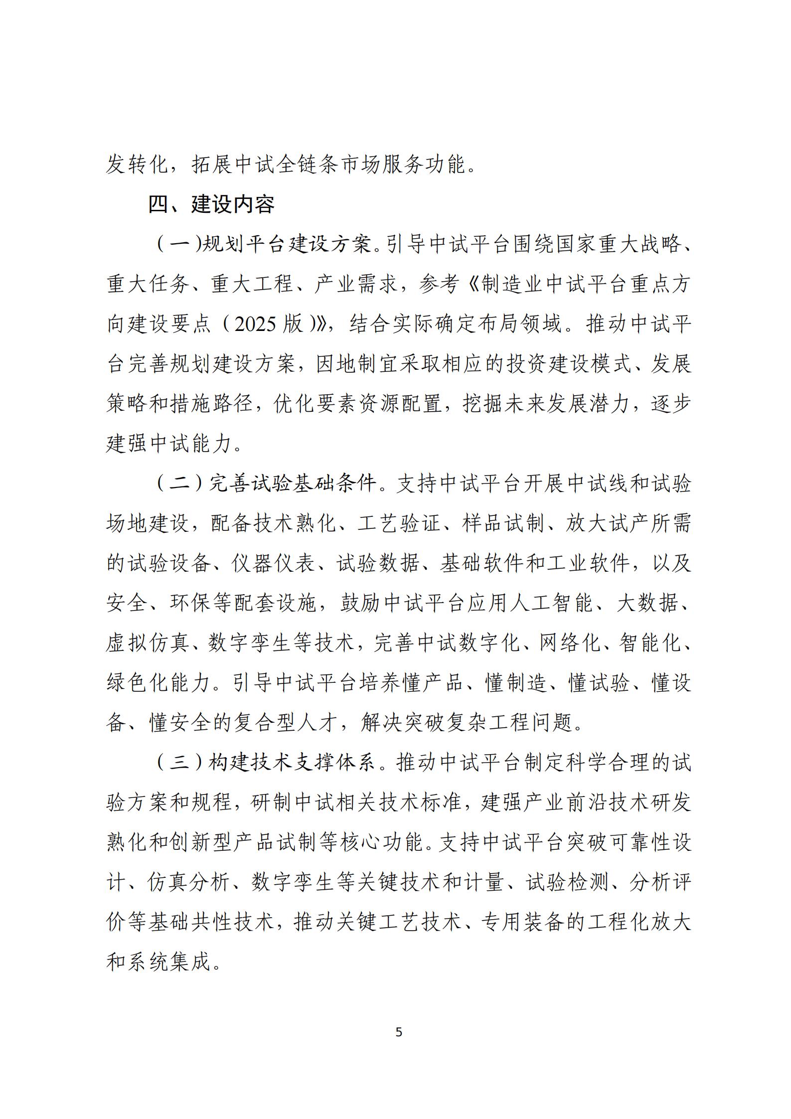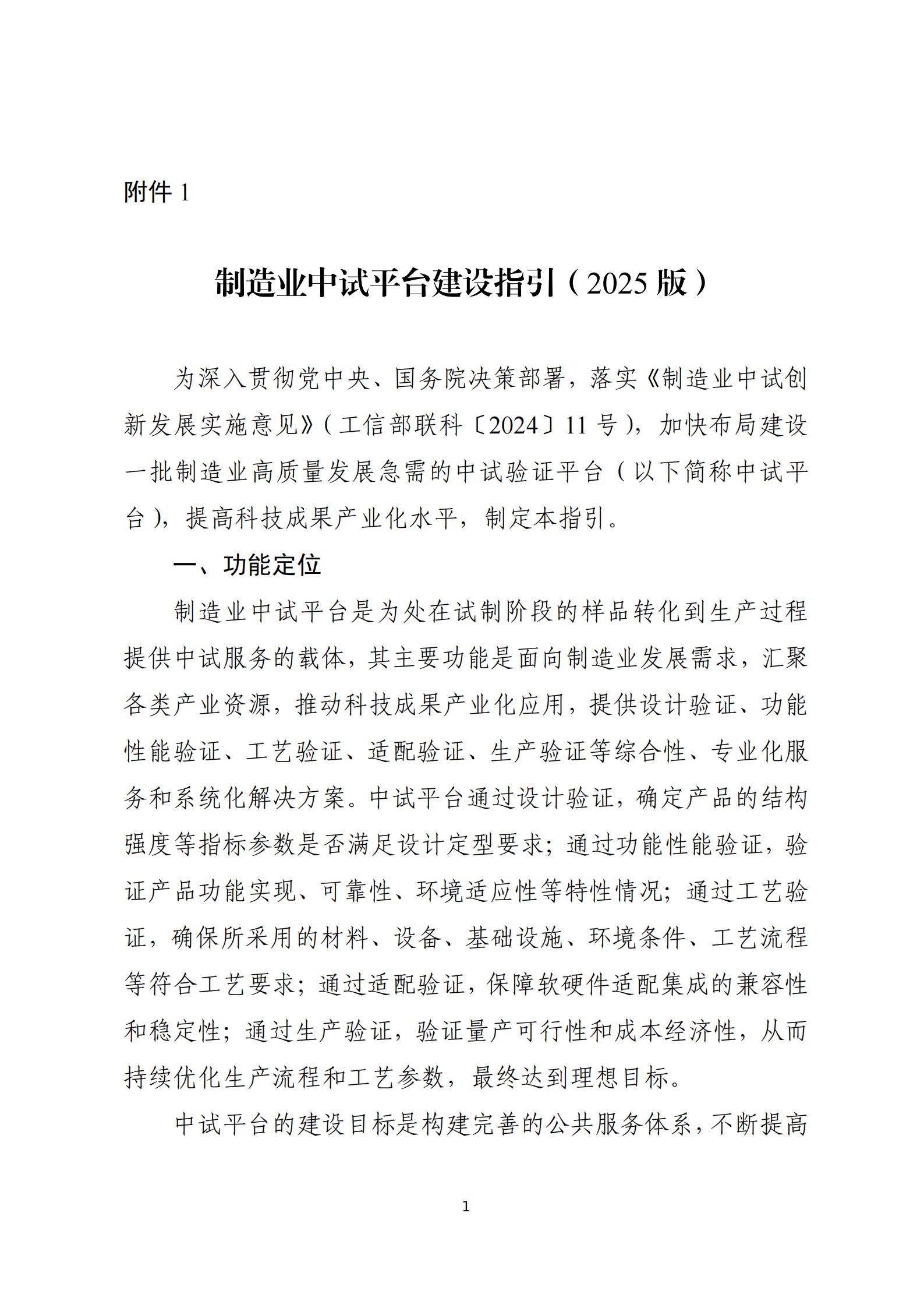 根據《制造業中試平臺建設指引(2025版)》(附件1)、《制造業中試平臺重點方向建設要點(2025版)》(附件2),按照“做強一批、激活一批、補齊一批”的推進思路,突出公共服務性質和功能,明確建設路徑,系統化推動中試平臺建設發展。