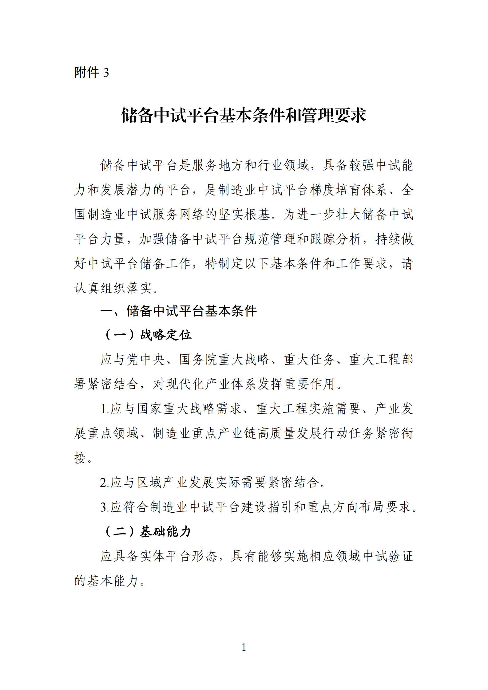 為落實《制造業中試創新發展實施意見》(工信部聯科〔2024〕11號),進一步推進制造業中試平臺體系化布局,加強高水平中試平臺建設,現將有關工作通知如下: