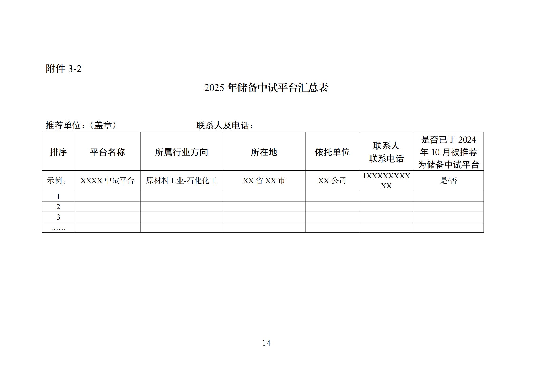(一)各地工業和信息化主管部門于11月28日前依據《儲備中試平臺基本條件和管理要求》(附件3),動員符合條件的中試平臺依托單位登錄制造業中試數字化管理服務平臺(http://zhongshi.ceprei.com)填報上傳《儲備中試平臺申報信息表》蓋章掃描件,并按照有關程序和要求遴選出儲備中試平臺,于12月15日前在制造業中試數字化管理服務平臺上傳《2025年儲備中試平臺匯總表》蓋章掃描件。已納入2024年度儲備庫的中試平臺(首批工業和信息化部重點培育中試平臺除外)須參照上述要求填報更新相關信息,由各地省級工業和信息化主管部門復核。
