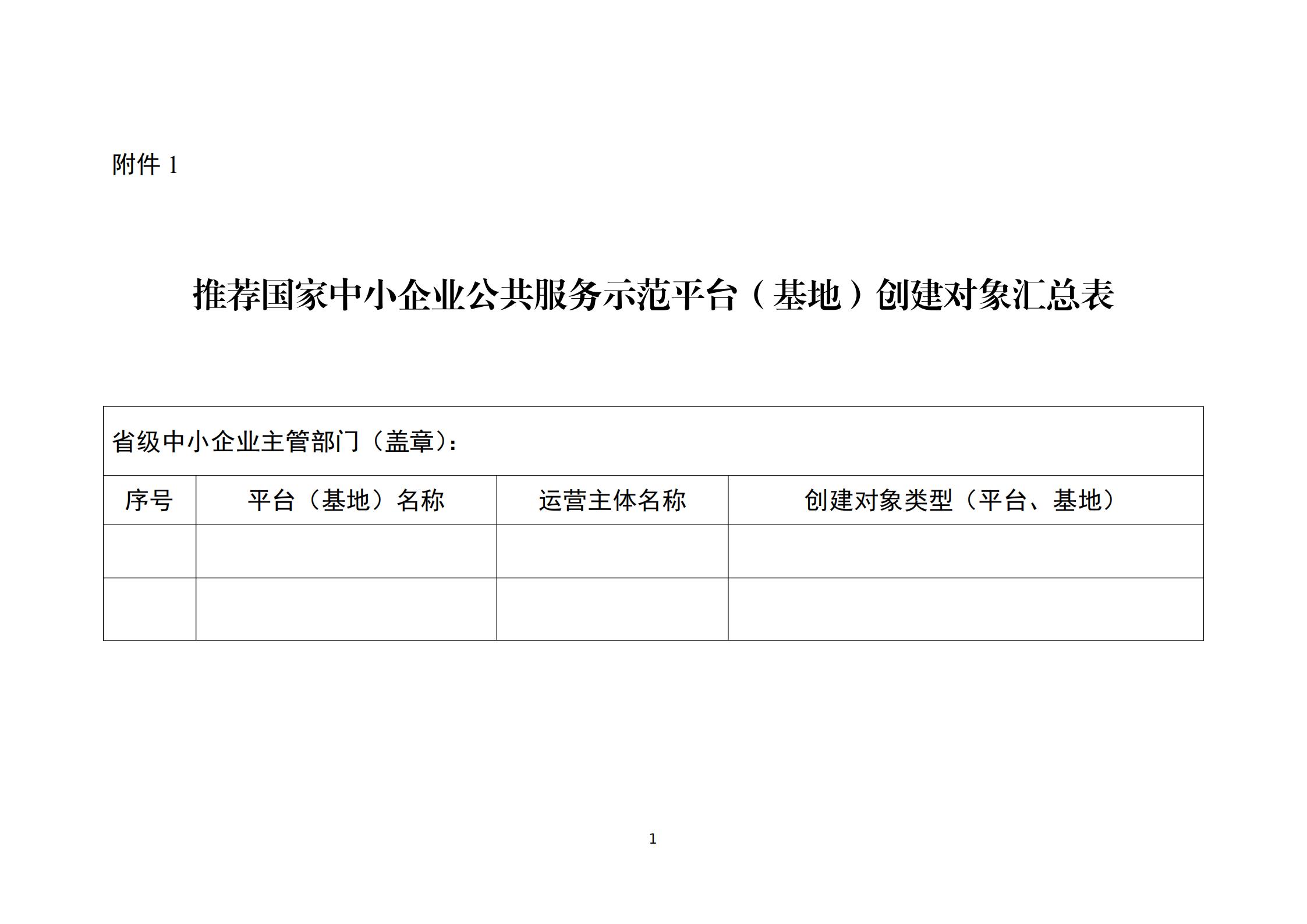 1.推薦國家中小企業公共服務示范平臺(基地)創建對象匯總表
