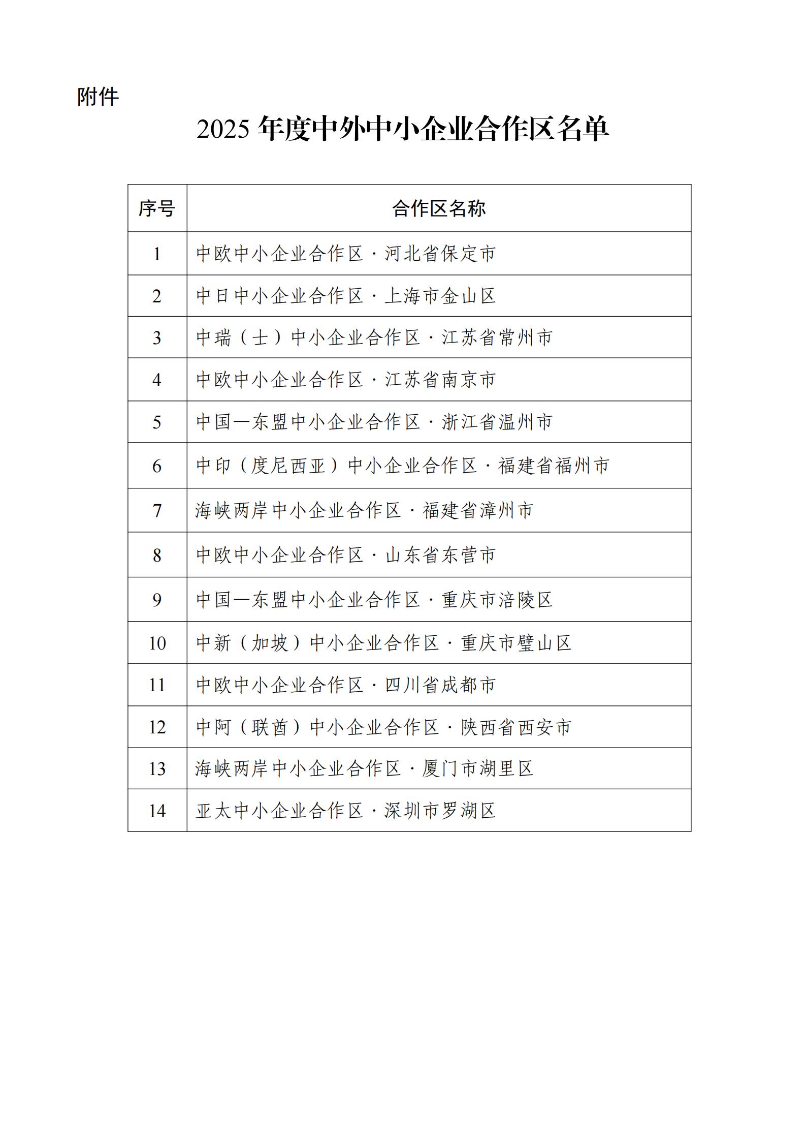 工業(yè)和信息化部關(guān)于公布2025年度中外中小企業(yè)合作區(qū)名單的通告