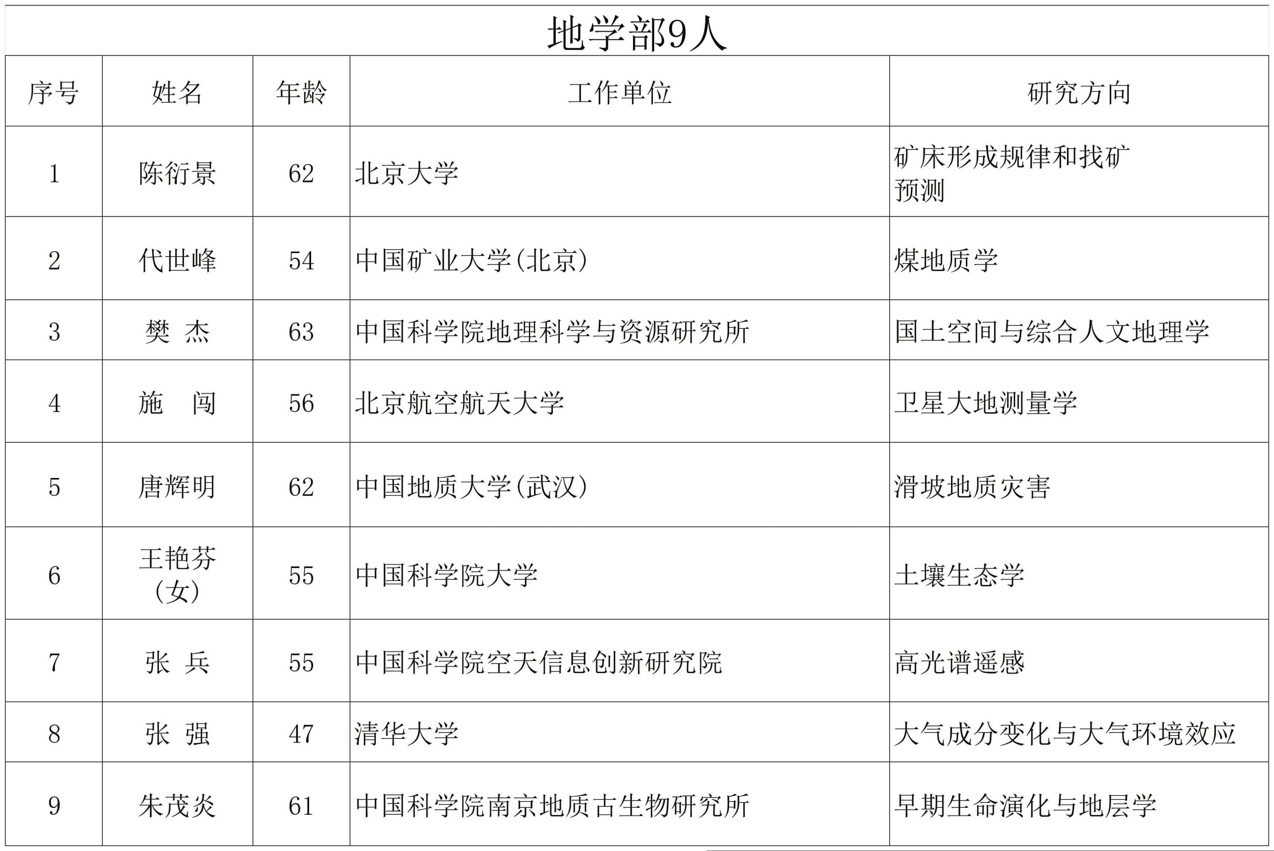 關于公布2025年中國科學院院士增選當選院士名單的公告