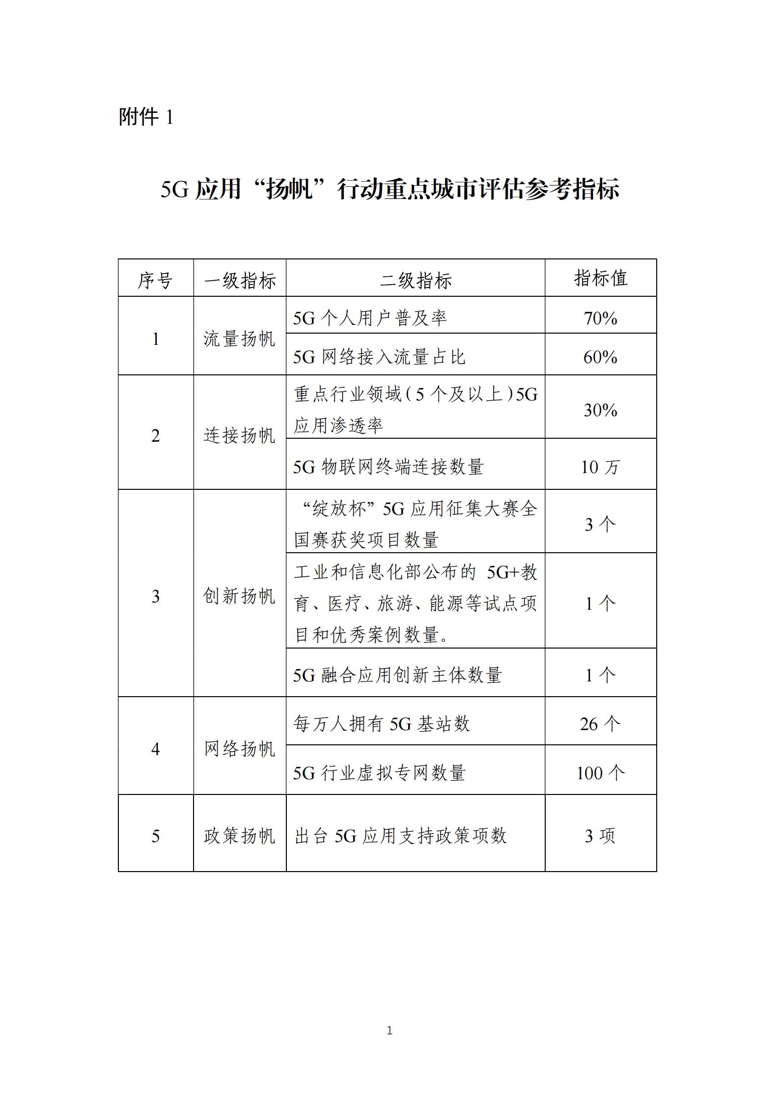 5G應用“揚帆”行動重點城市總結評估工作的通知