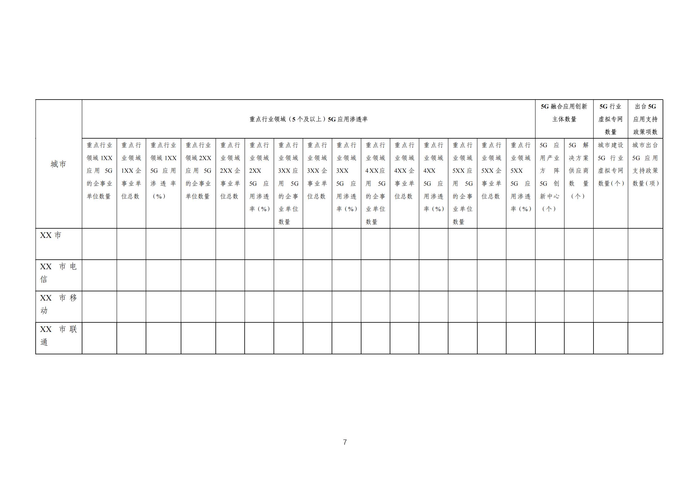 (五)5G應用政策支持情況。包括地方政府為推動5G應用規模化發展、構建5G應用生態、培育5G應用產業等開展的工作情況,出臺并落實政策措施情況;地方政府建設5G相關產業集聚區、5G產業創新基地、5G創新應用引領區等情況。
