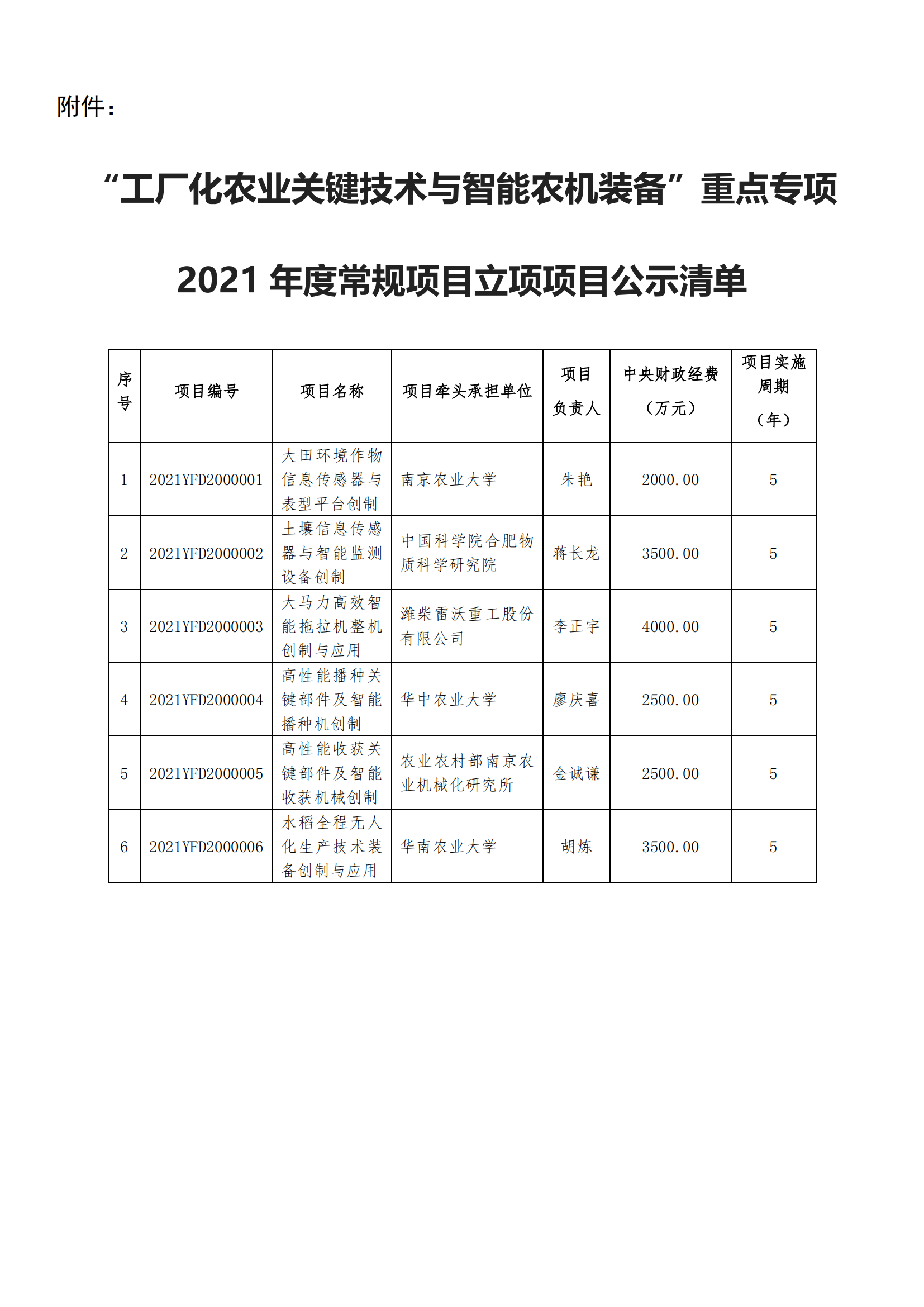 ? ? ? “工廠化農業關鍵技術與智能農機裝備”重點專項2021年度常規項目立項項目公示清單.pdf