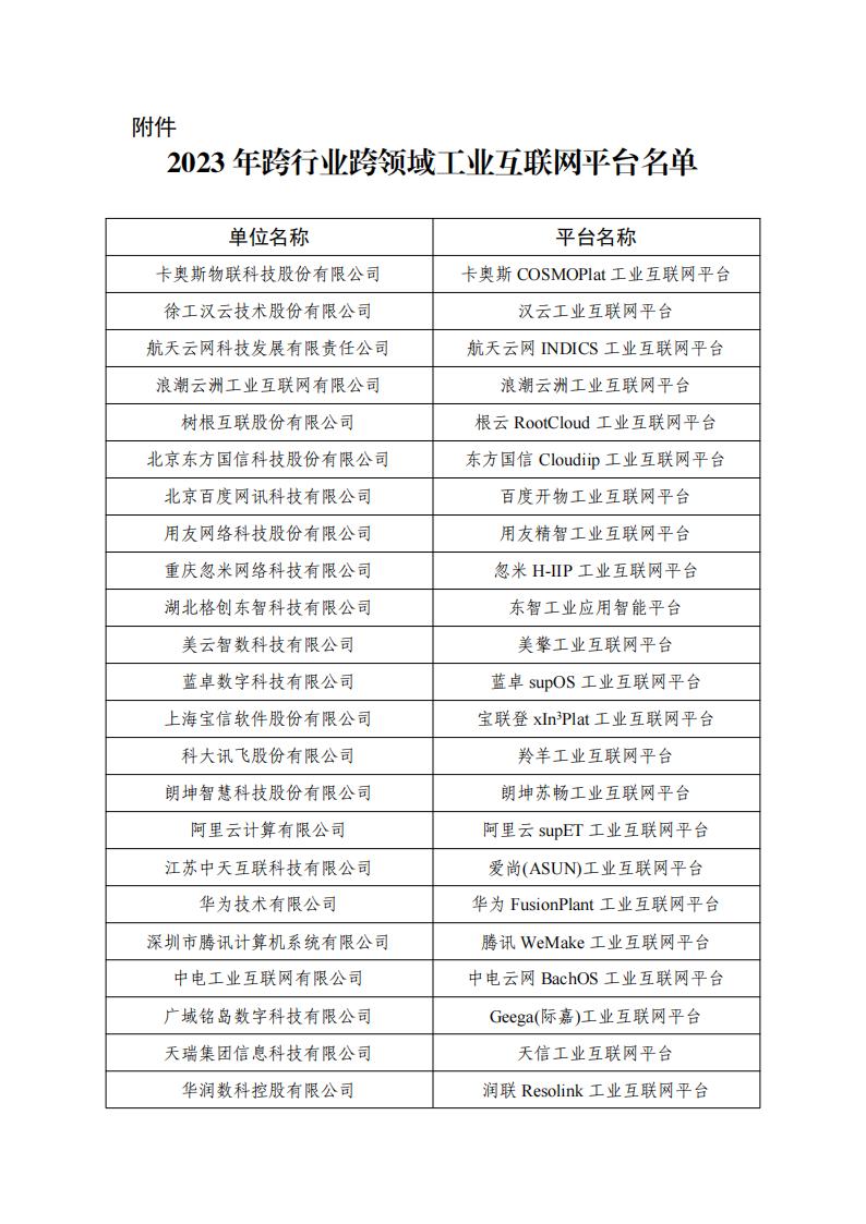 附件:2023年跨行業(yè)跨領(lǐng)域工業(yè)互聯(lián)網(wǎng)平臺(tái)名單