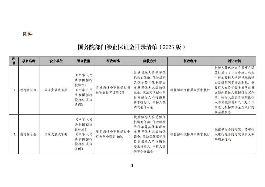 附件:《國務院部門涉企保證金目錄清單(2023版)》