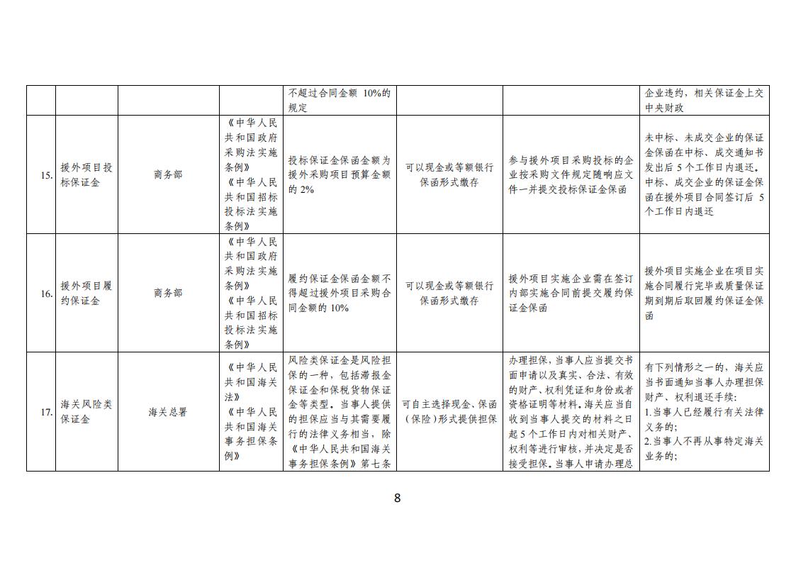 兩部委關于優化調整國務院部門涉企保證金目錄清單的公告
