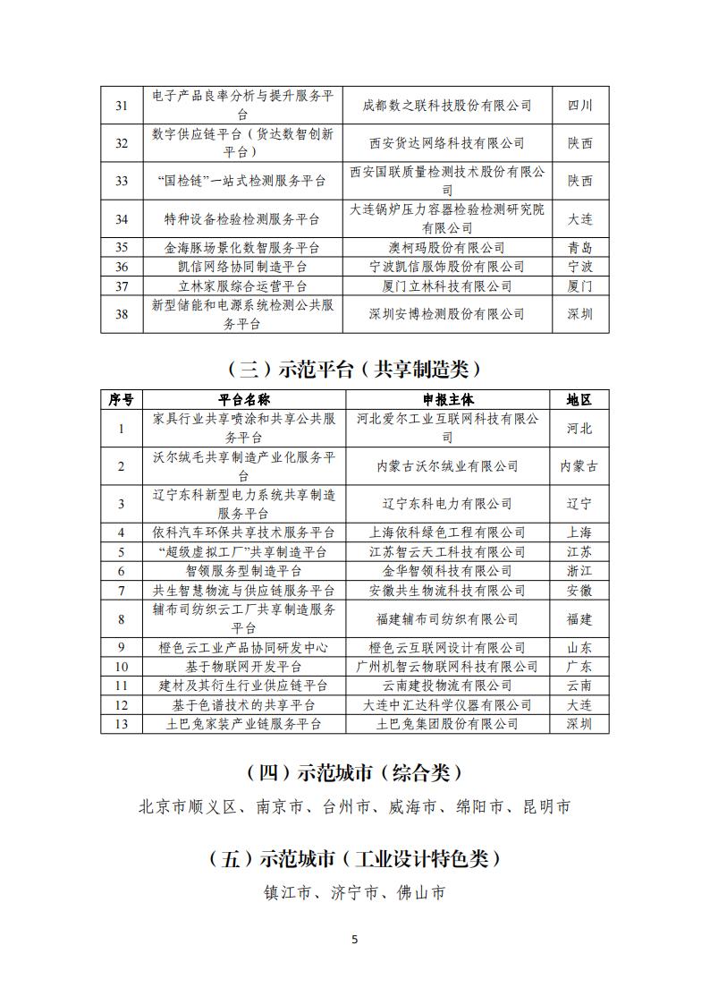 工業和信息化部辦公廳關于公布第五批服務型制造示范名單的通知