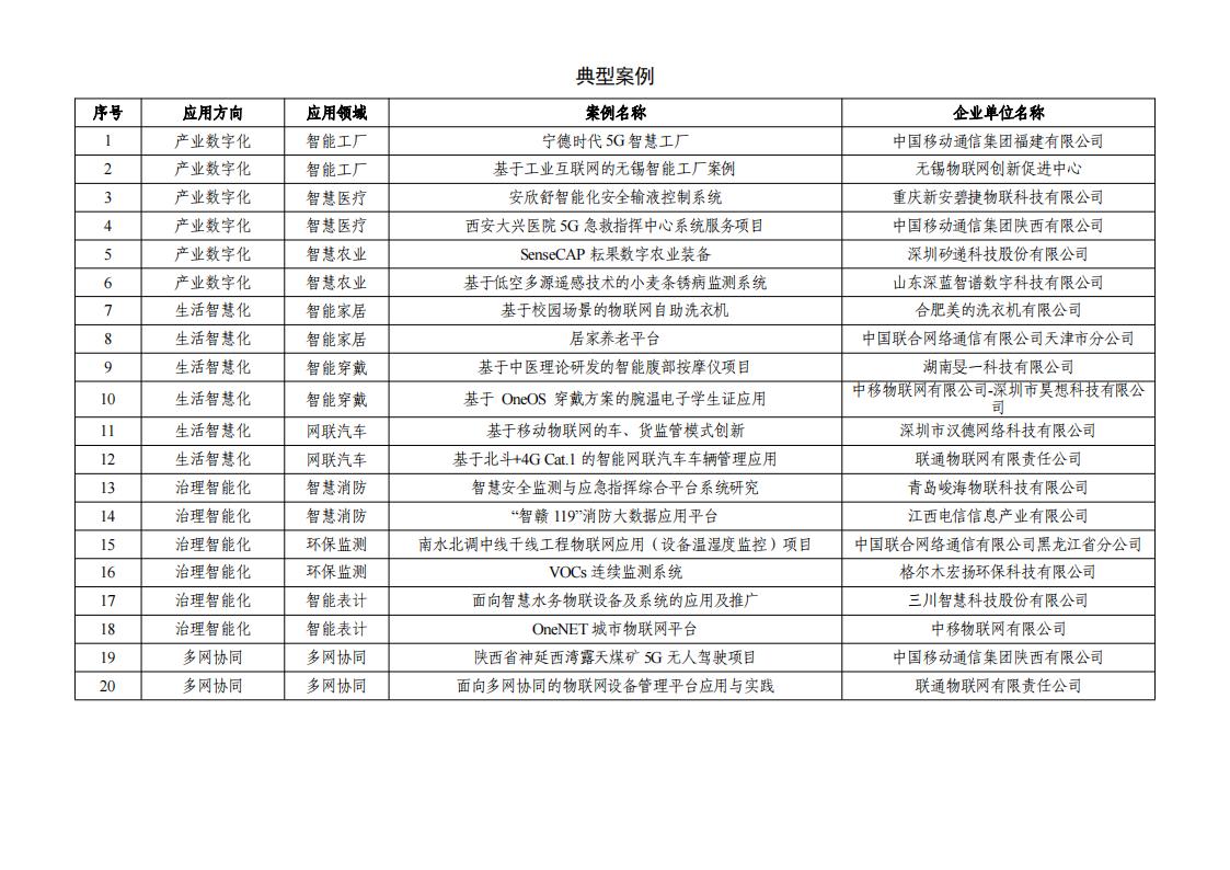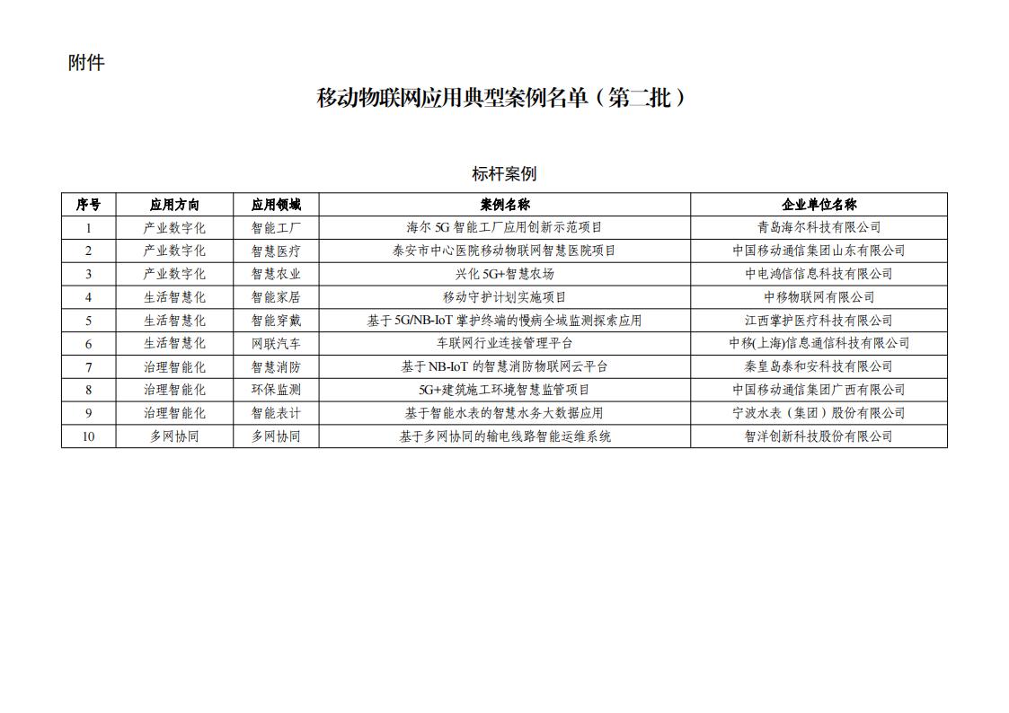 工業和信息化部辦公廳關于公布移動物聯網應用典型案例名單(第二批)的通知