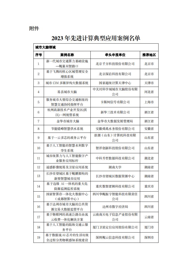 工信部|關于公布2023年先進計算典型應用案例名單的通知