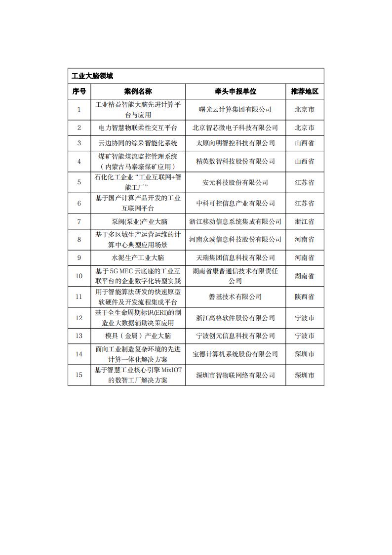 工業和信息化部辦公廳關于公布2023年先進計算典型應用案例名單的通知