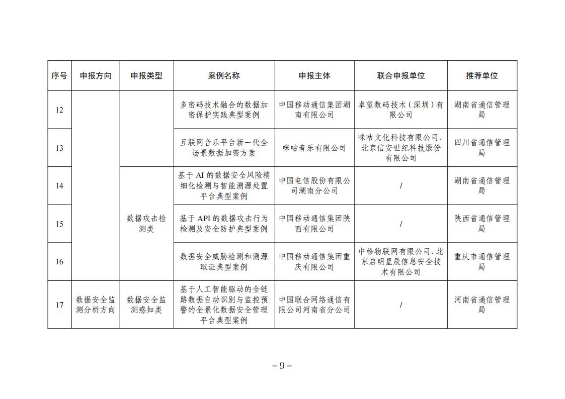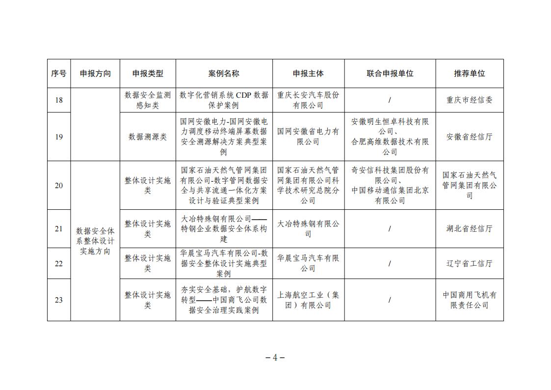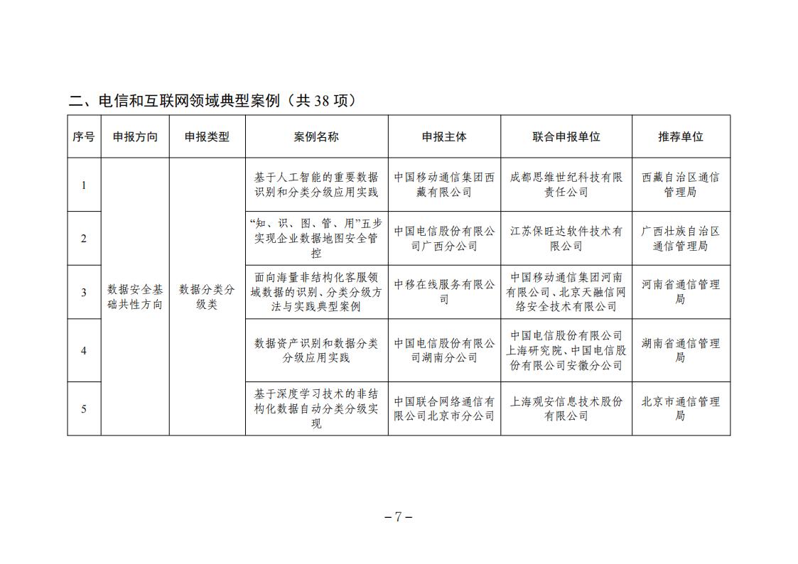 根據《工業和信息化部辦公廳關于組織開展2023年工業和信息化領域數據安全典型案例遴選工作的通知》(工信廳網安函〔2023〕266號),經申報推薦、形式審查、專業初審、專家評審和網上公示,確定了2023年工業和信息化領域數據安全典型案例名單,現予以公布。