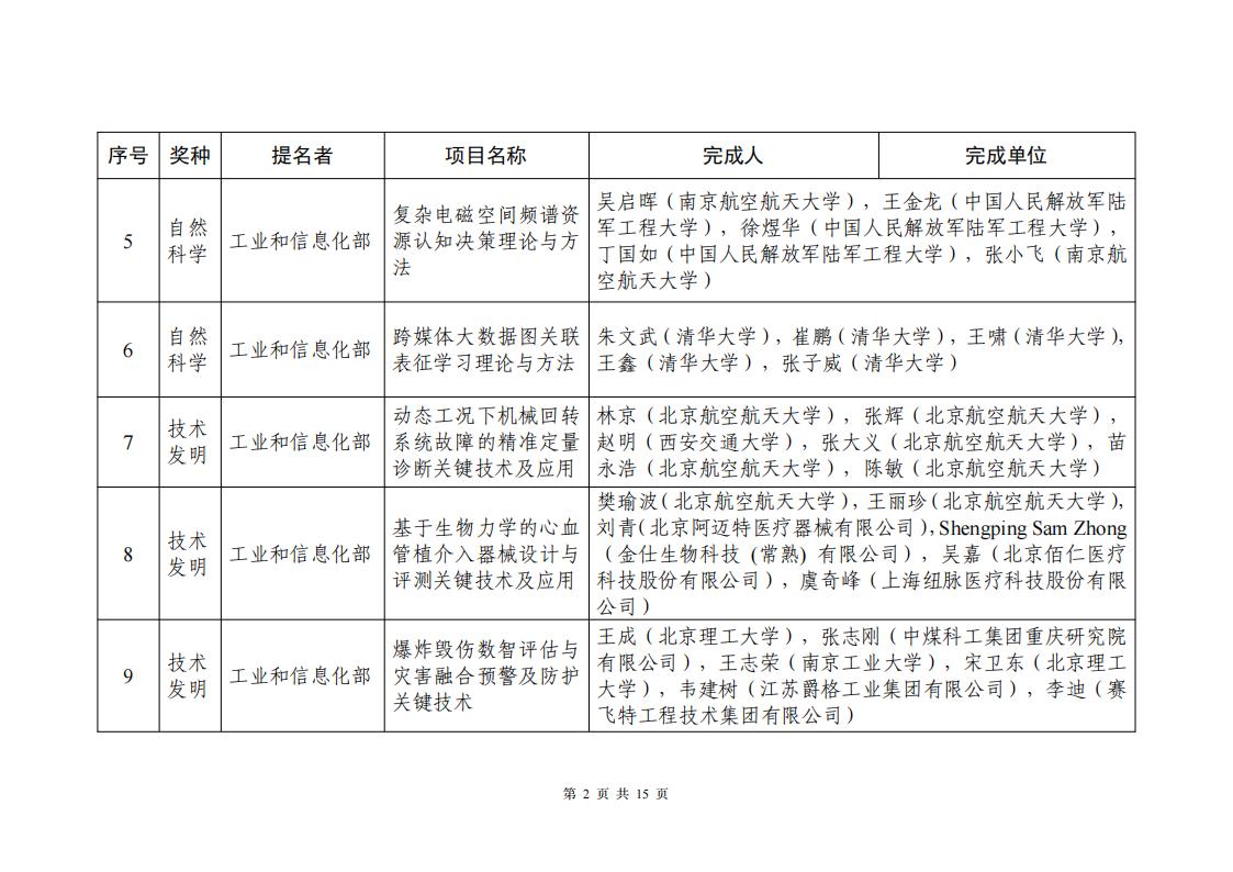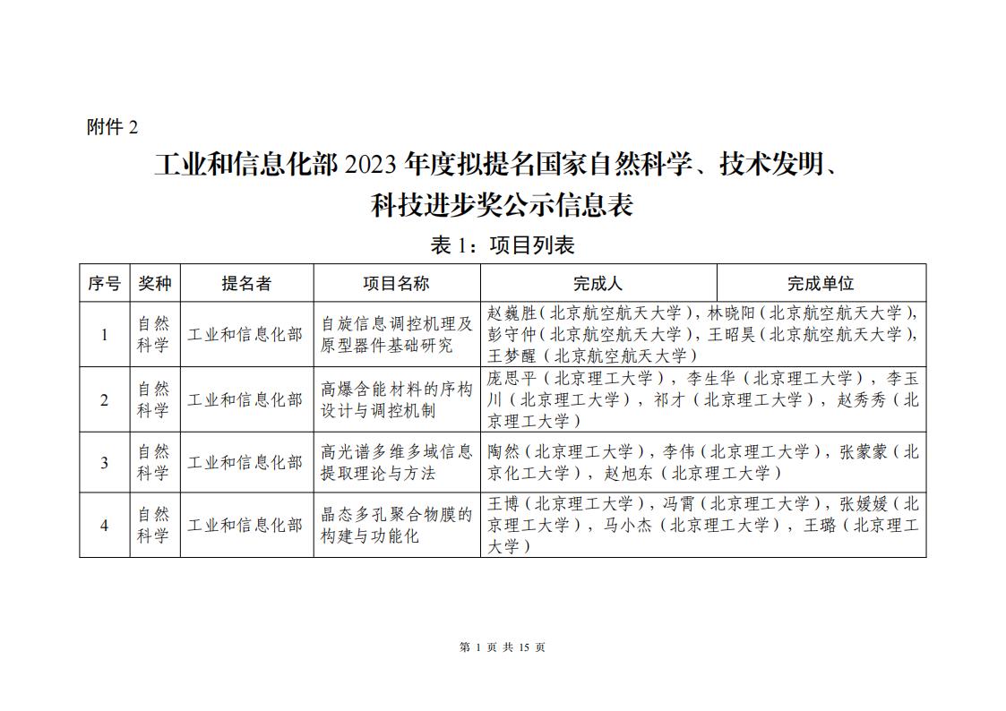 2.工業(yè)和信息化部2023年度擬提名國(guó)家自然科學(xué)、技術(shù)發(fā)明、科技進(jìn)步獎(jiǎng)公示信息表