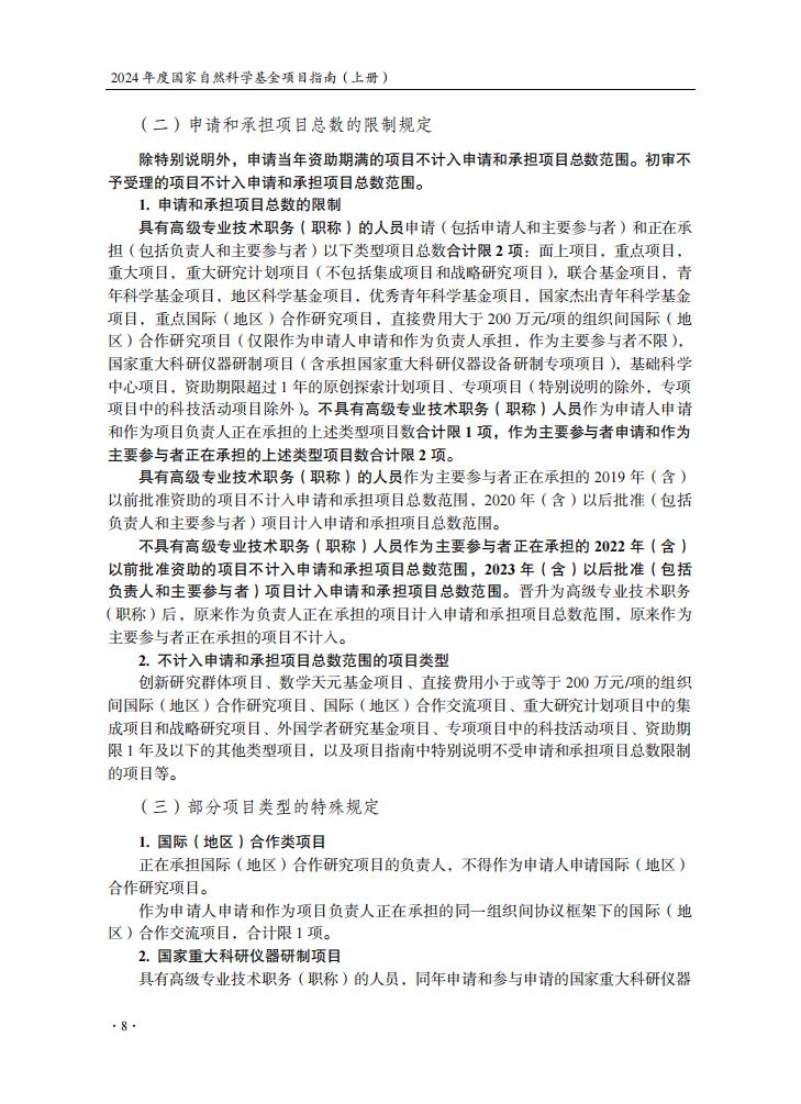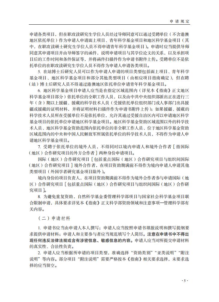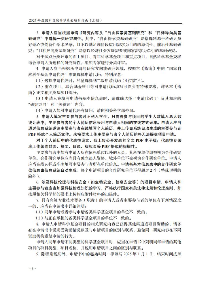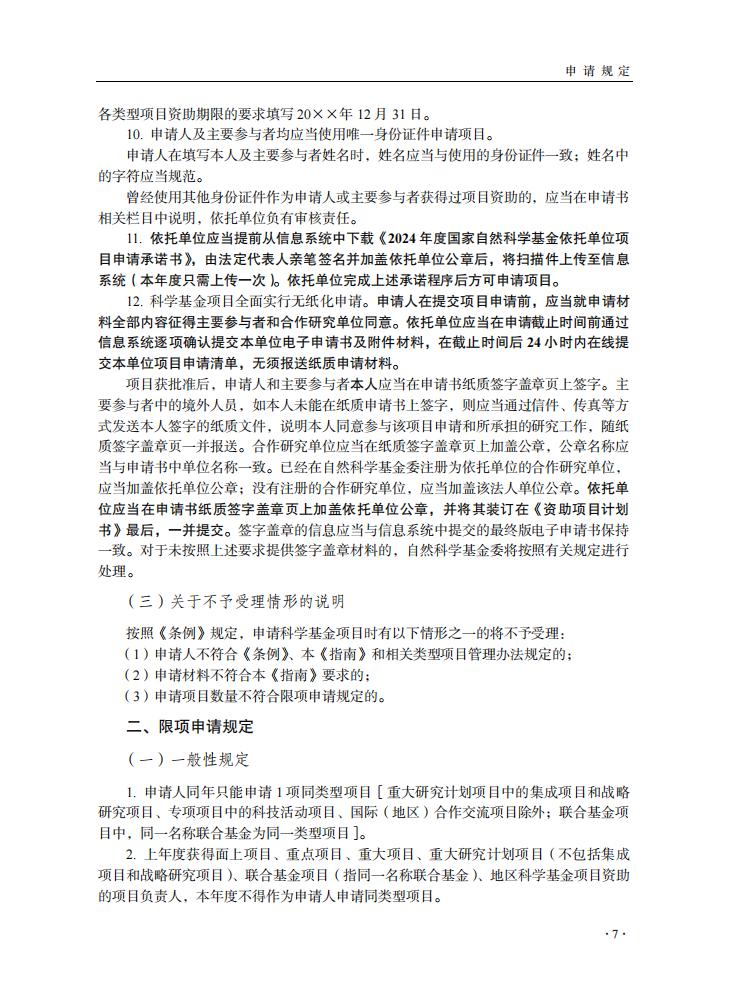 申請規定-節選自《2024年度國家自然科學基金項目指南》