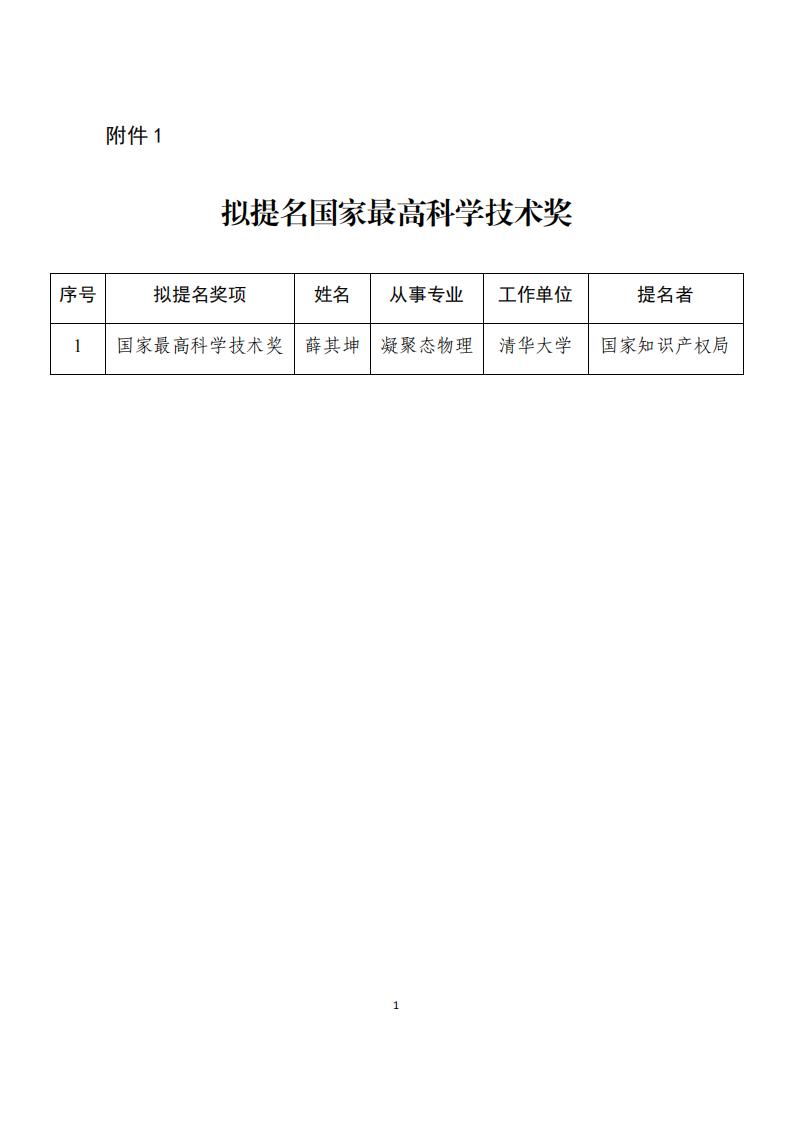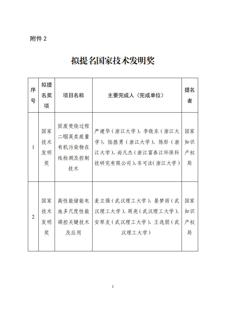 根據(jù)《國家科學(xué)技術(shù)獎勵工作辦公室關(guān)于2023年度國家科學(xué)技術(shù)獎提名工作的通知》(國科獎字〔2023〕21號)相關(guān)要求,現(xiàn)將國家知識產(chǎn)權(quán)局?jǐn)M提名的國家最高科學(xué)技術(shù)獎1人、國家技術(shù)發(fā)明獎2項予以公示,公示時間為2024年1月10日至1月14日,共5天。