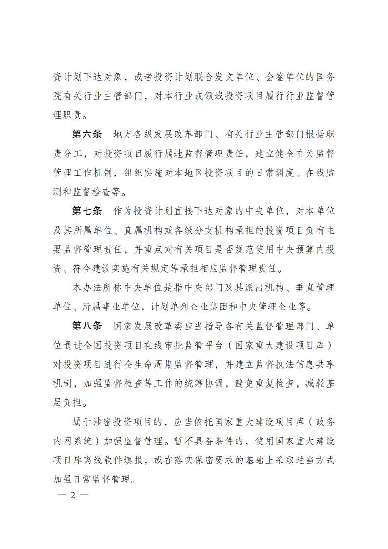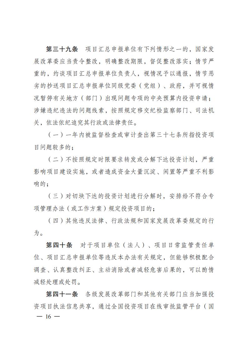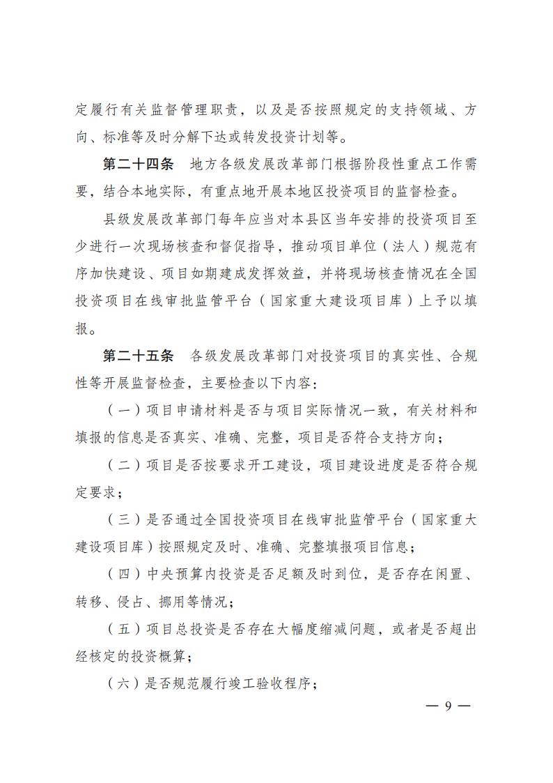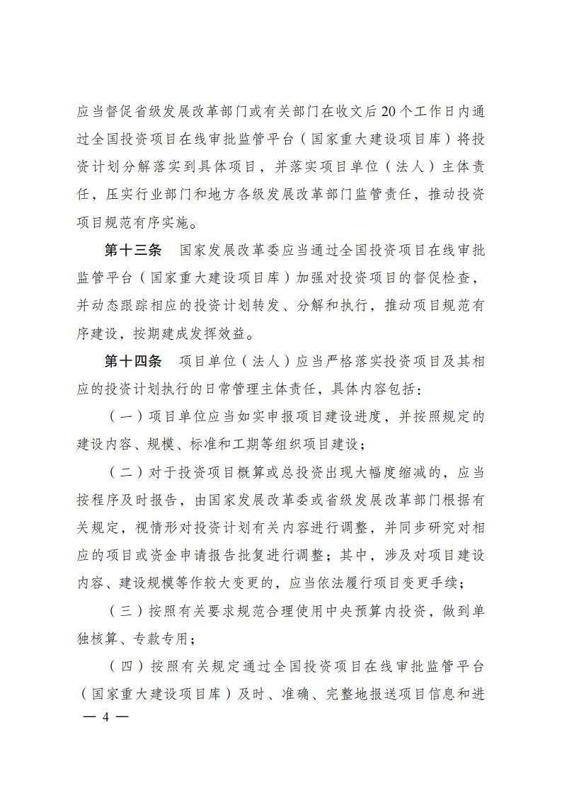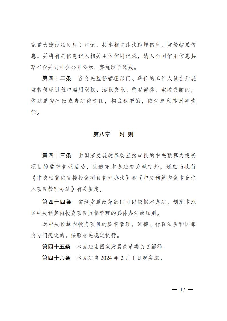 《中央預算內投資項目監督管理辦法》 2023年第10號令