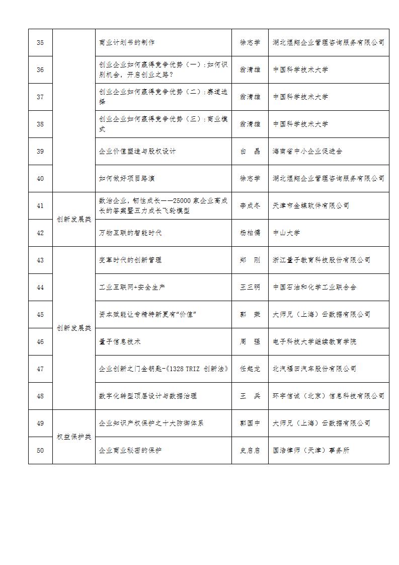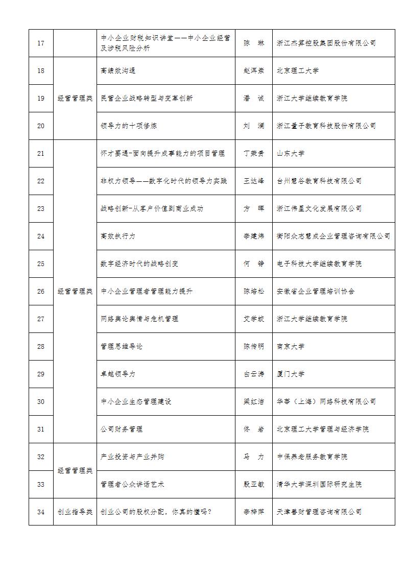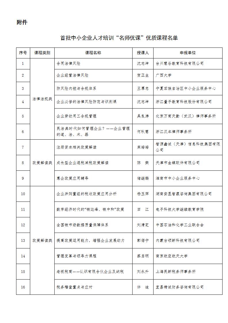 ? ? ? ? 附件:首批中小企業(yè)人才培訓“名師優(yōu)課”優(yōu)質(zhì)課程名單