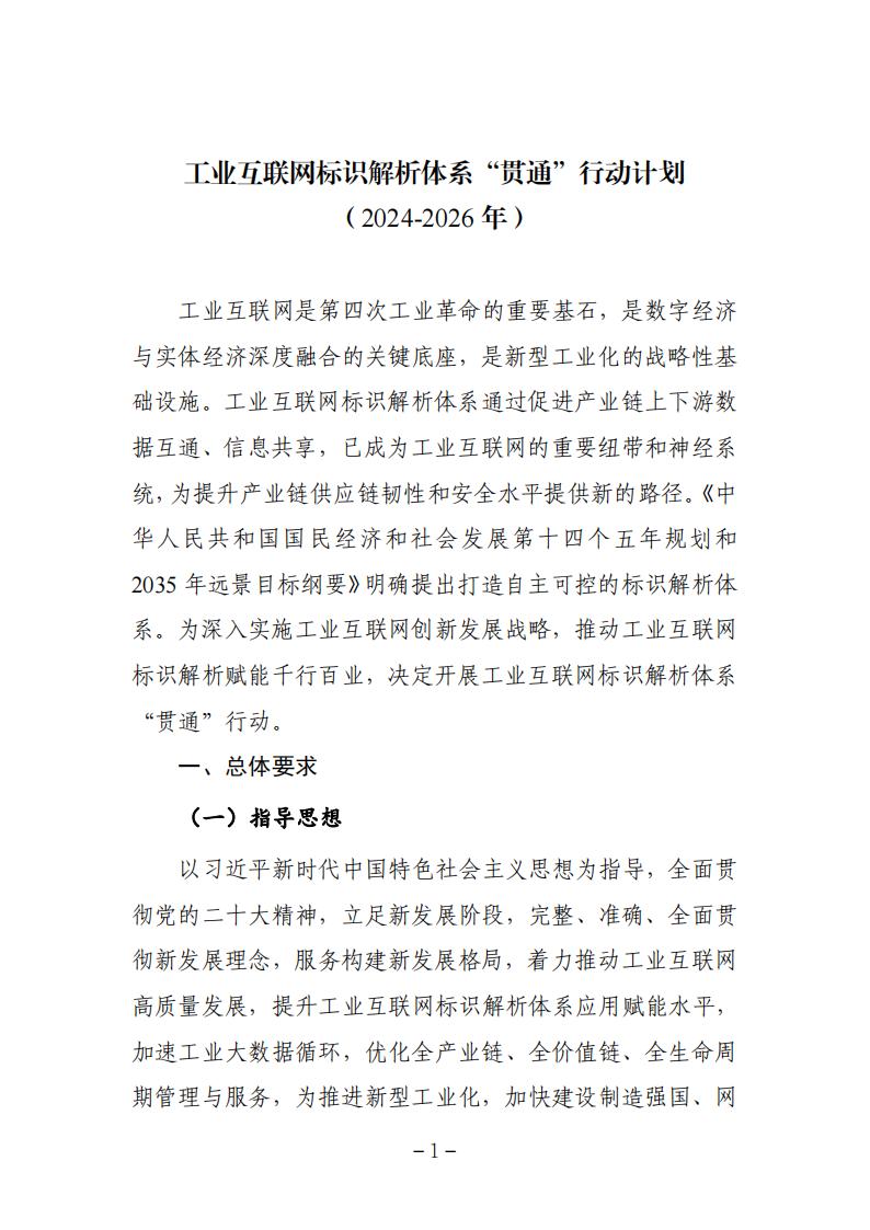 現(xiàn)將《工業(yè)互聯(lián)網(wǎng)標(biāo)識解析體系“貫通”行動計劃(2024-2026年)》印發(fā)給你們,請結(jié)合實際,抓好貫徹落實。