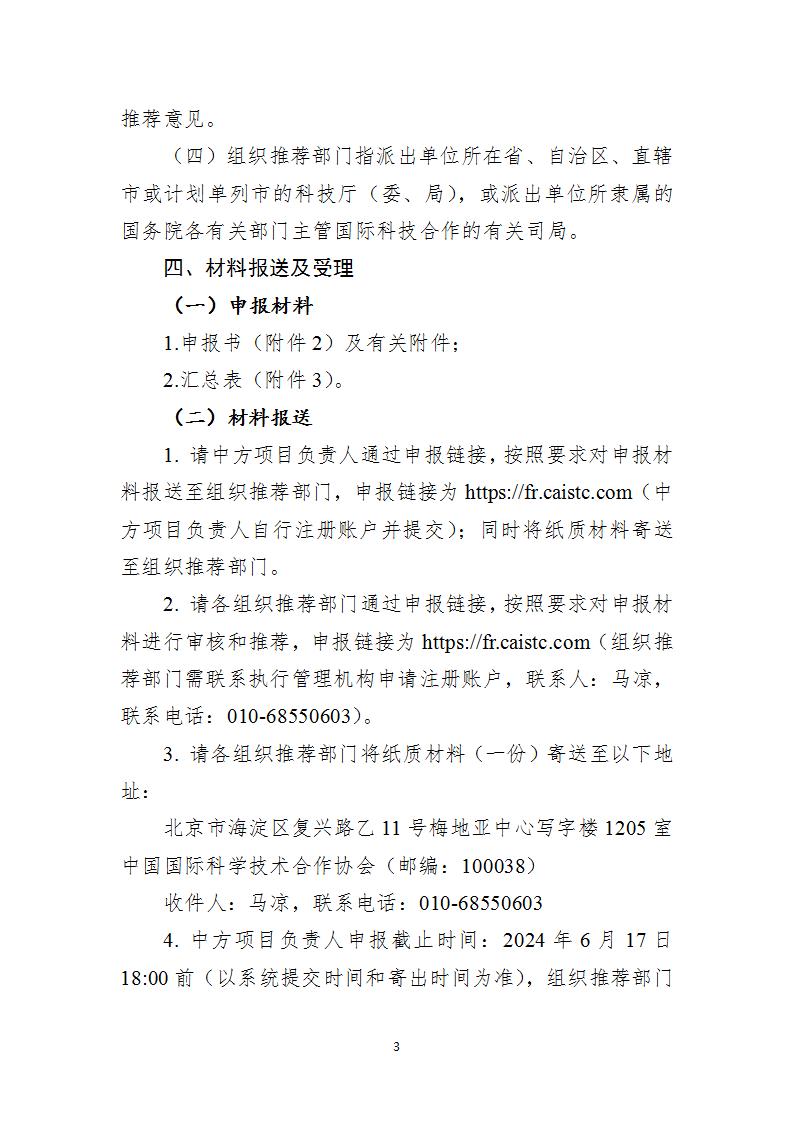 請(qǐng)各單位按照《2025年度“中法科研伙伴交流計(jì)劃”征集指南》(附件1)要求,推薦候選項(xiàng)目,并將相關(guān)材料(簽字蓋章有效)于2024年6月17日前報(bào)送至中國(guó)國(guó)際科學(xué)技術(shù)合作協(xié)會(huì)。申報(bào)結(jié)束后將組織專(zhuān)家評(píng)審,根據(jù)中法雙方評(píng)審結(jié)果擇優(yōu)錄取并通知各有關(guān)單位。