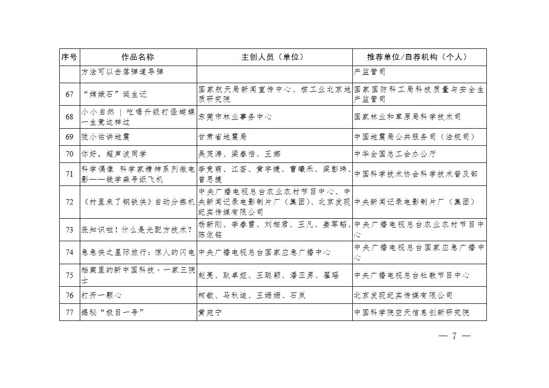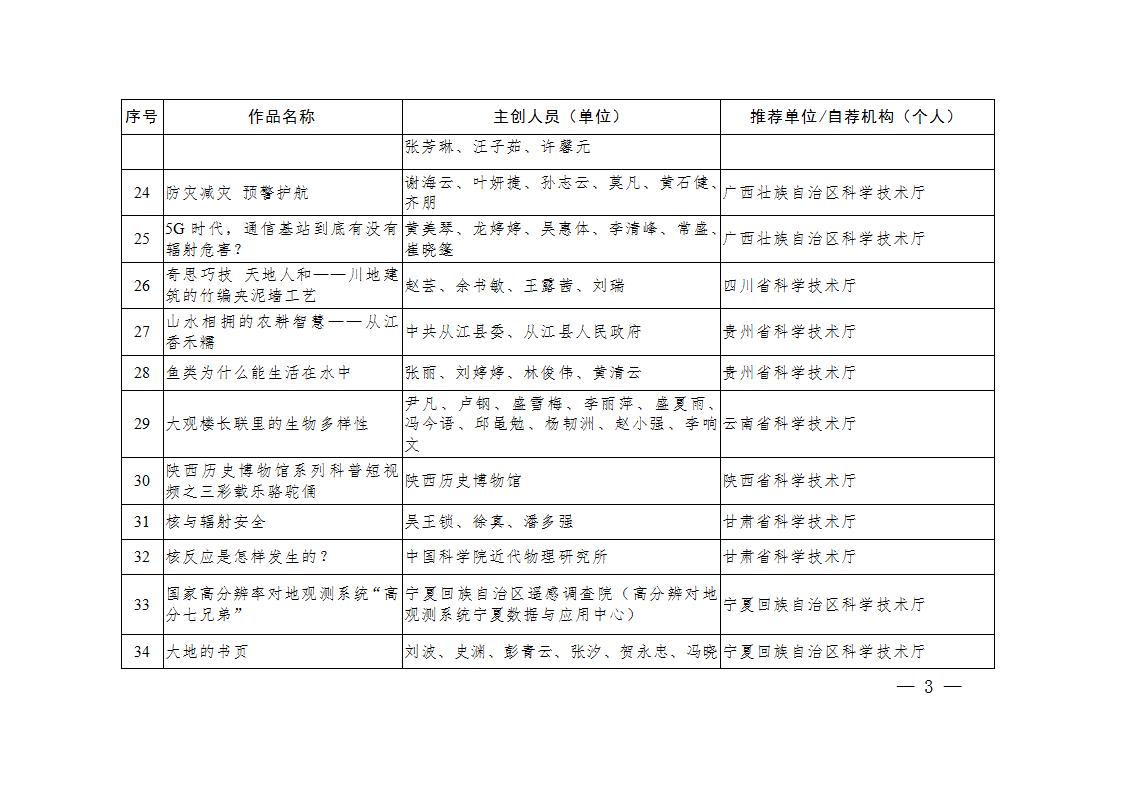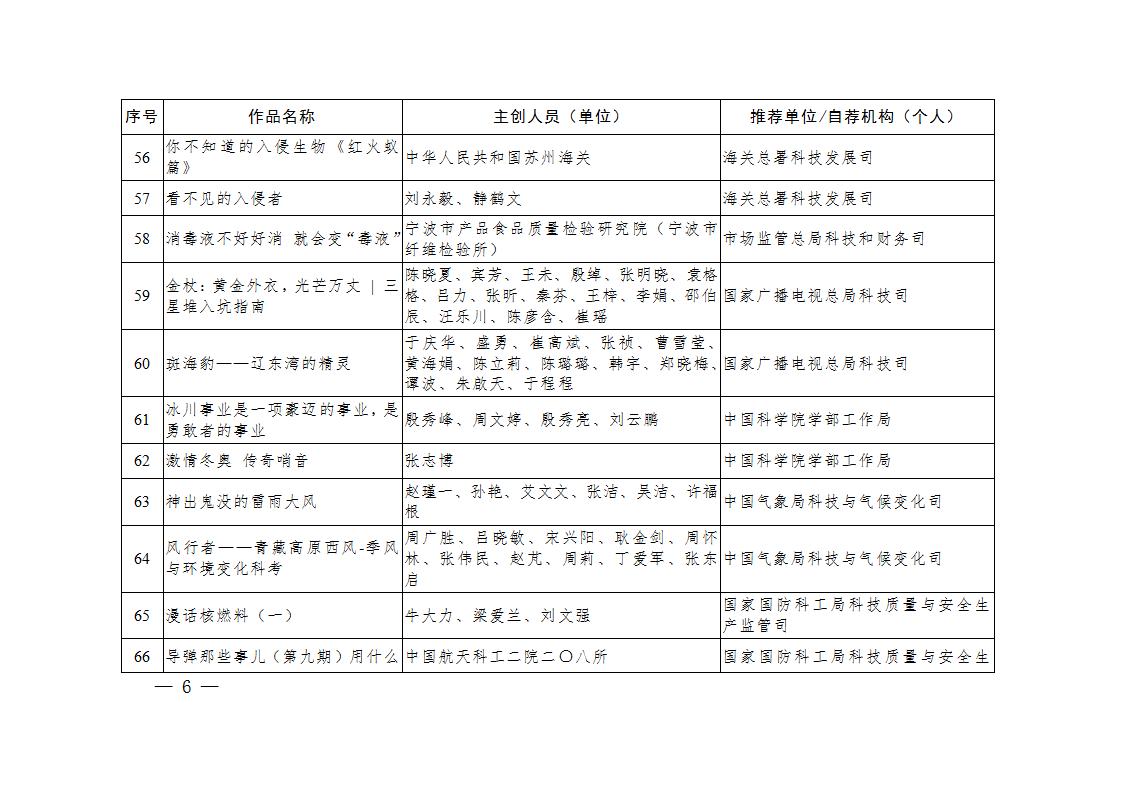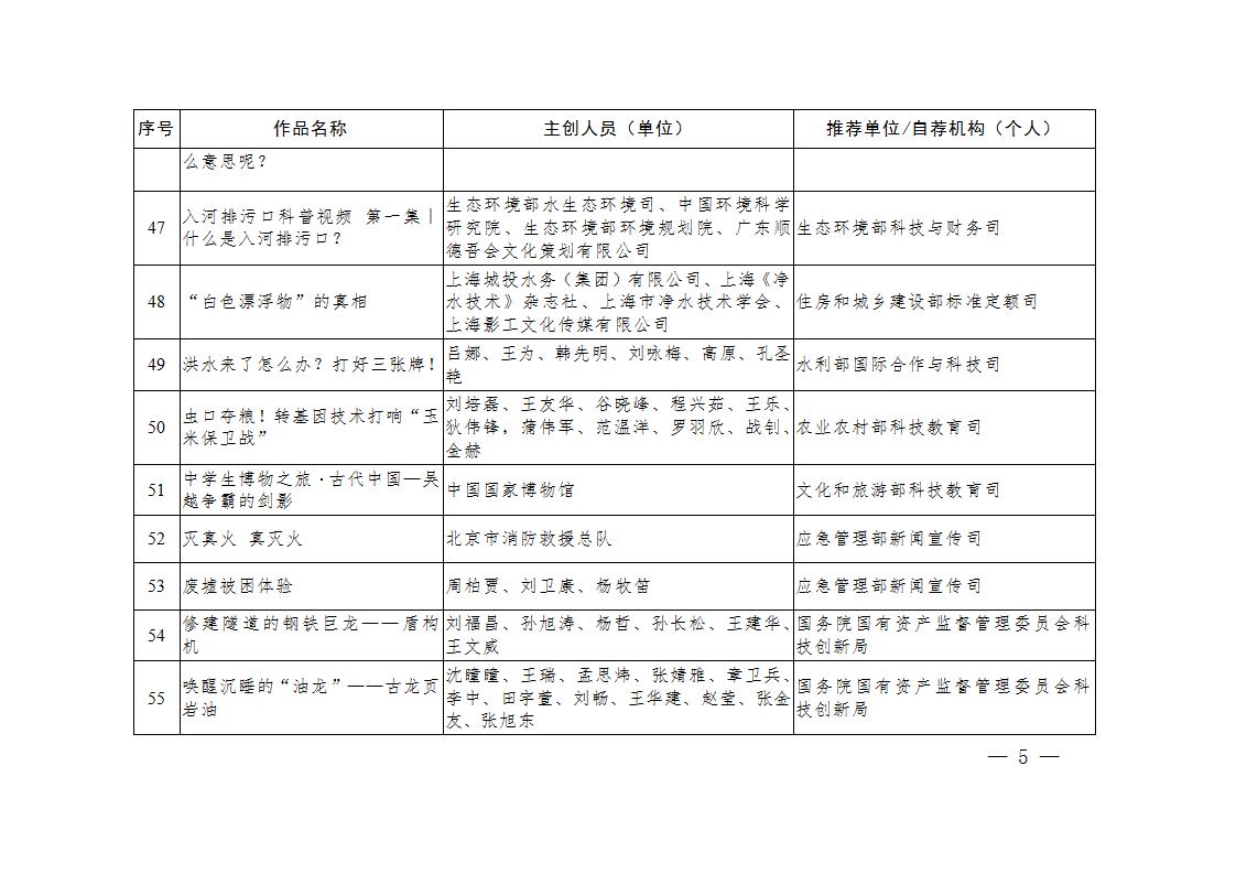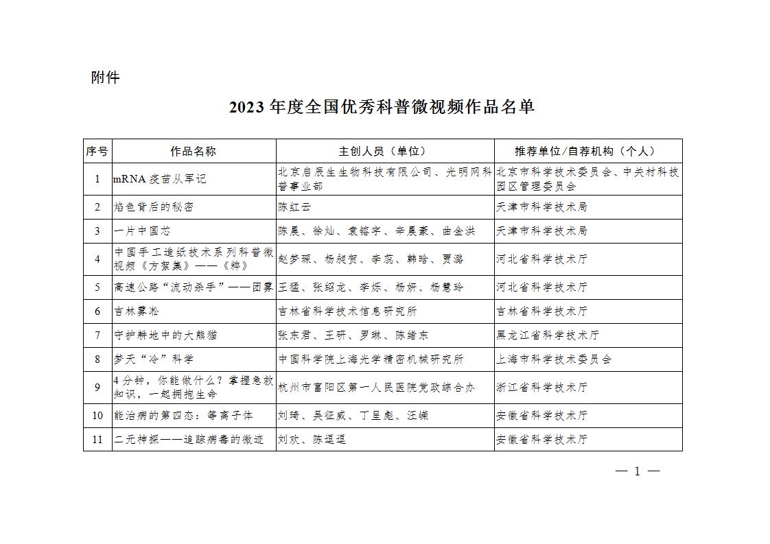 科技部辦公廳 中國科學院辦公廳關于公布2023年度全國優秀科普微視頻作品名單的通知