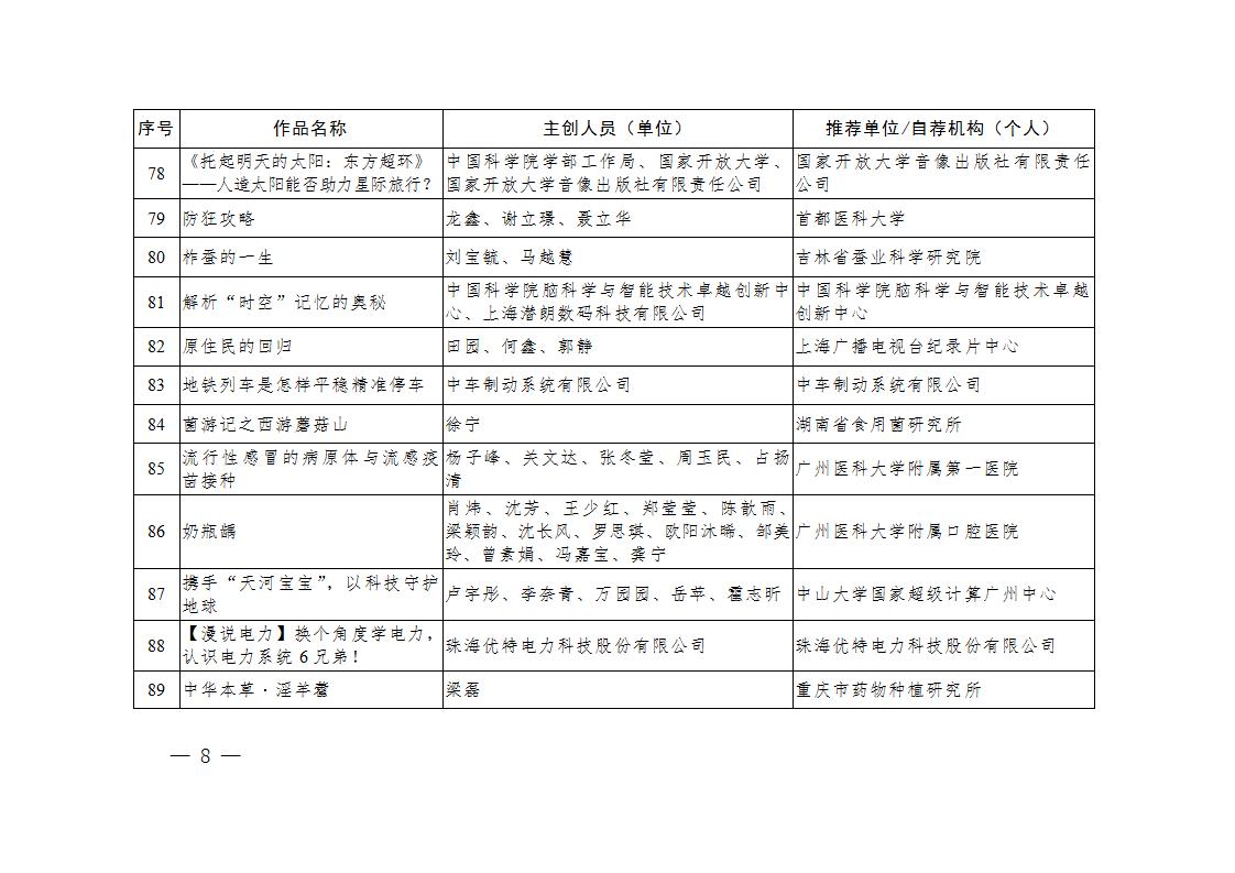 科技部 中國科學院|關于公布2023年度全國優秀科普微視頻作品名單的通知