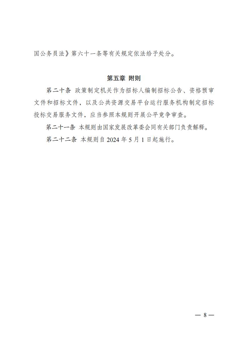 國家發(fā)改委等八部門聯(lián)合發(fā)布《招標投標領域公平競爭審查規(guī)則》