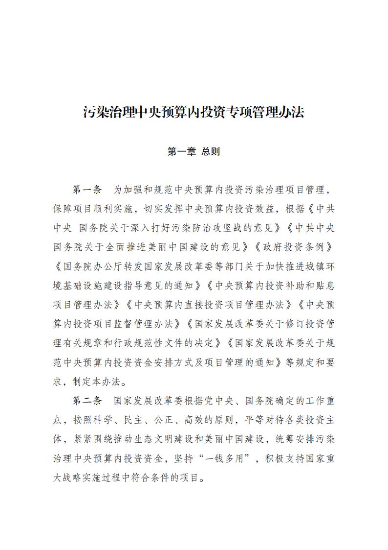 國家發(fā)改委|關(guān)于印發(fā)《污染治理中央預(yù)算內(nèi)投資專項(xiàng)管理辦法》的通知
