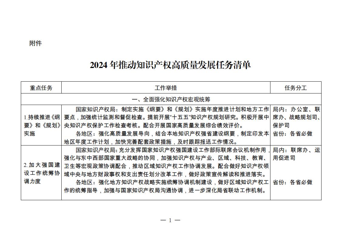 附件:2024年推動(dòng)知識(shí)產(chǎn)權(quán)高質(zhì)量發(fā)展任務(wù)清單