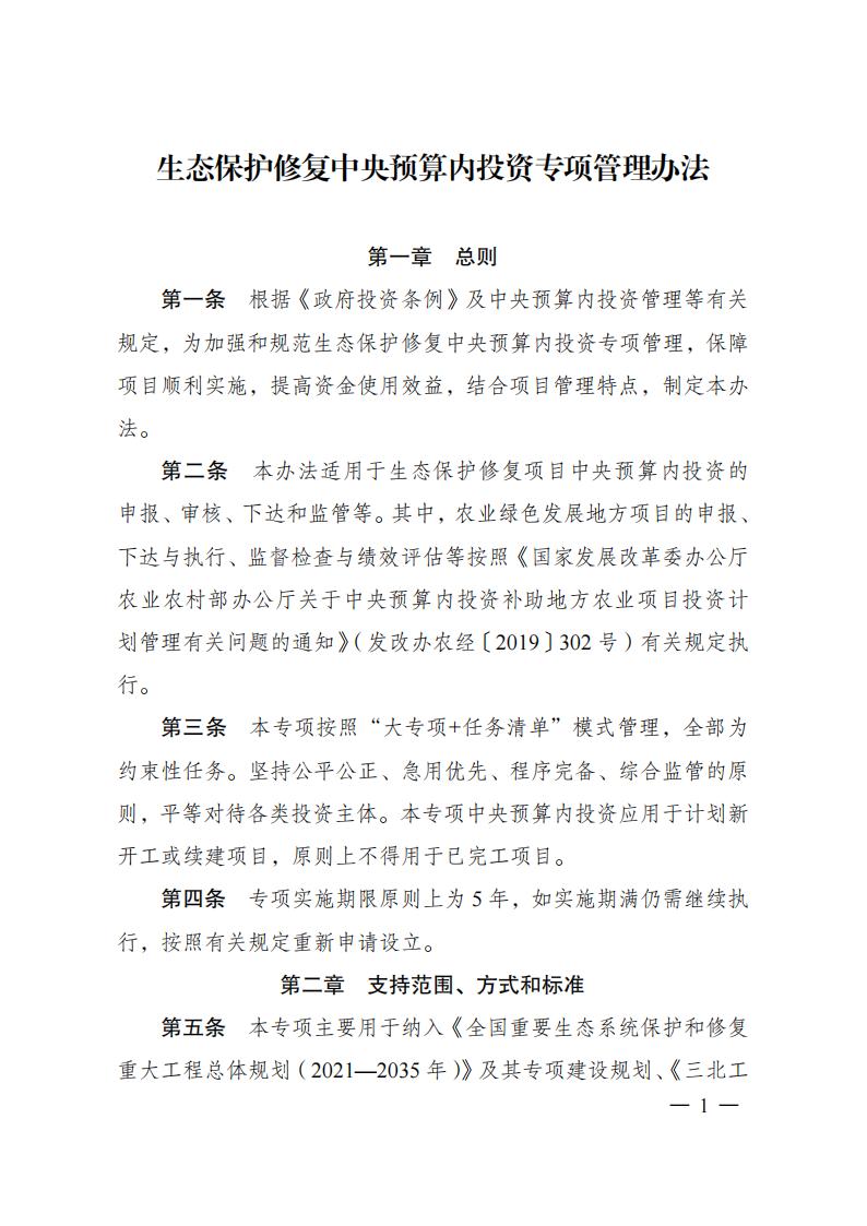 國家發改委|關于印發生態保護修復中央預算內投資專項管理辦法的通知