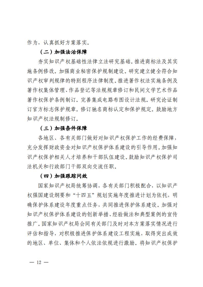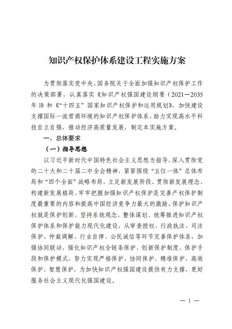 國家知識產權局 中央宣傳部 最高人民法院 最高人民檢察院 公安部 司法部 商務部 海關總署 市場監管總局關于印發知識產權保護體系建設工程實施方案的通知